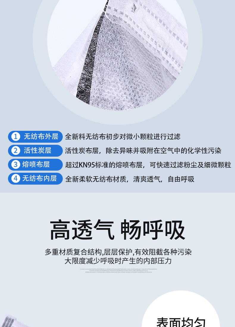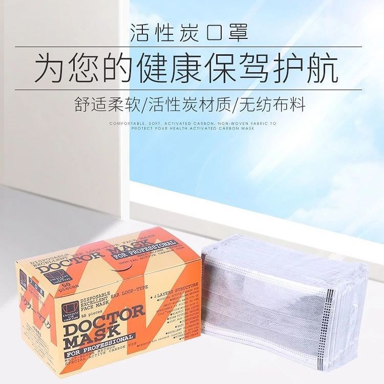 활성탄 마스크 1 회 4 층 두꺼운 보호 라이트 그레이 독립 포장 산업 방진 일본 포장스토어 가기