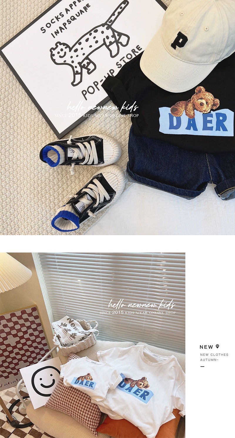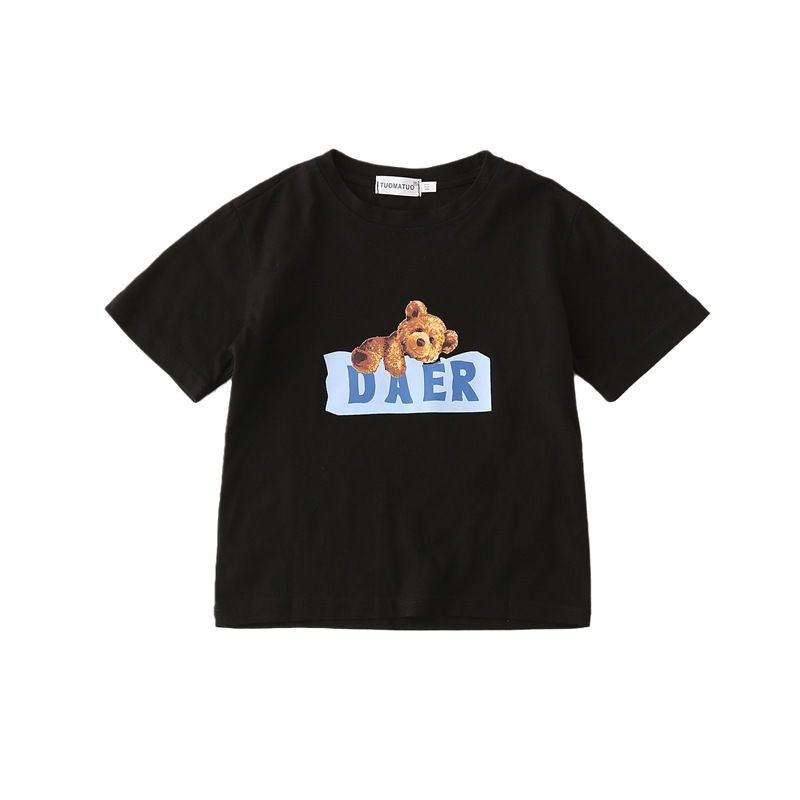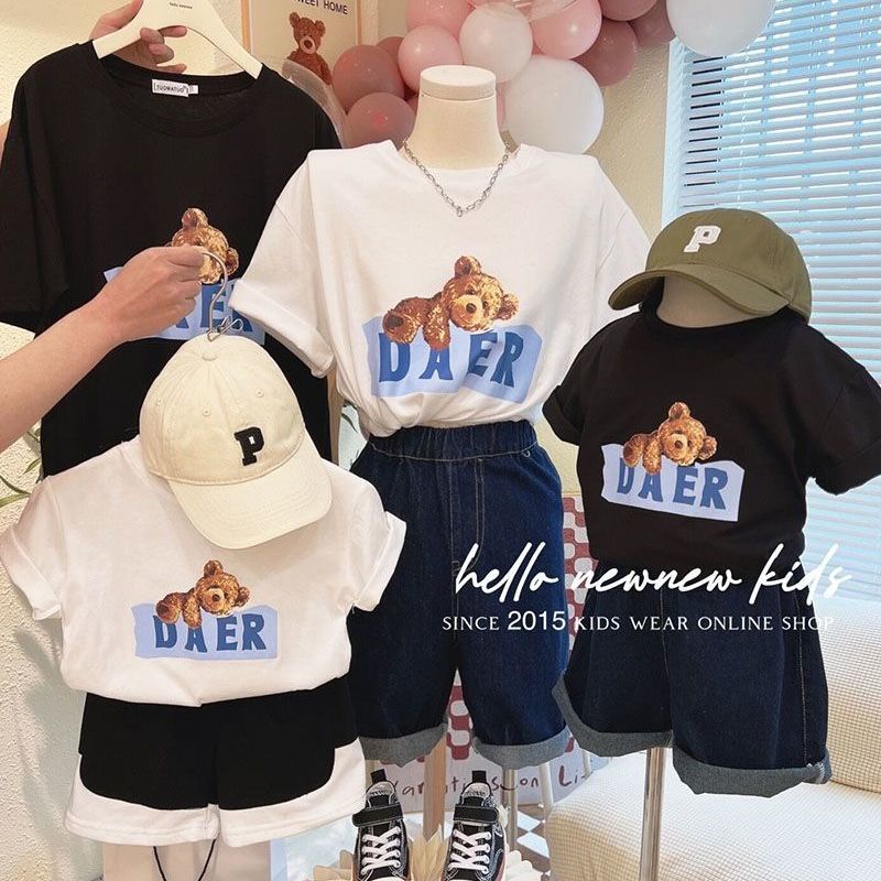 남학생과 여학생 여름 반팔 티셔츠 부모-자식 의류 아기 외국식 어린이 성격 트렌디 한 한국 만화 가족스토어 가기