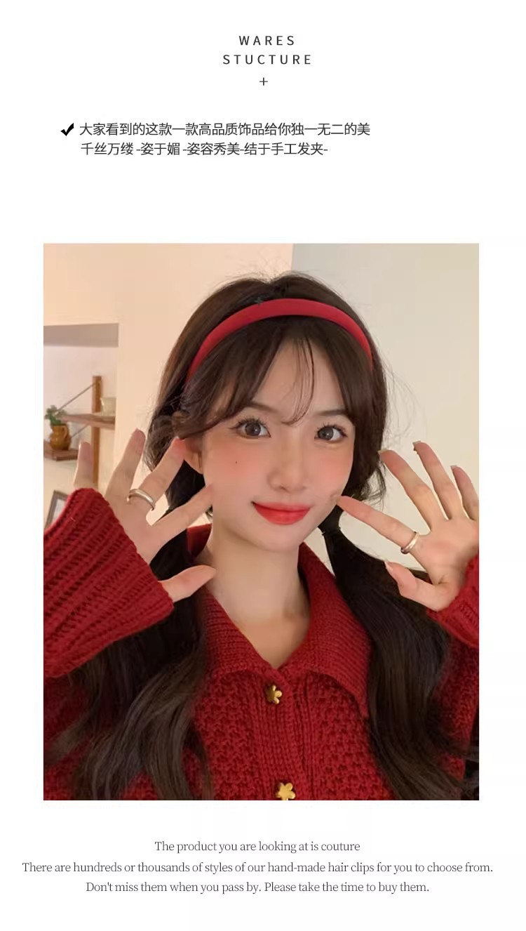 한국식 기질 레드 스위트 ~ 파인 헤어 후프 여성 레트로 올 매치 아웃 오브 더 웨이 헤어 후프 봄 및 가을 Ins 헤어 클립 헤어 액세서리
