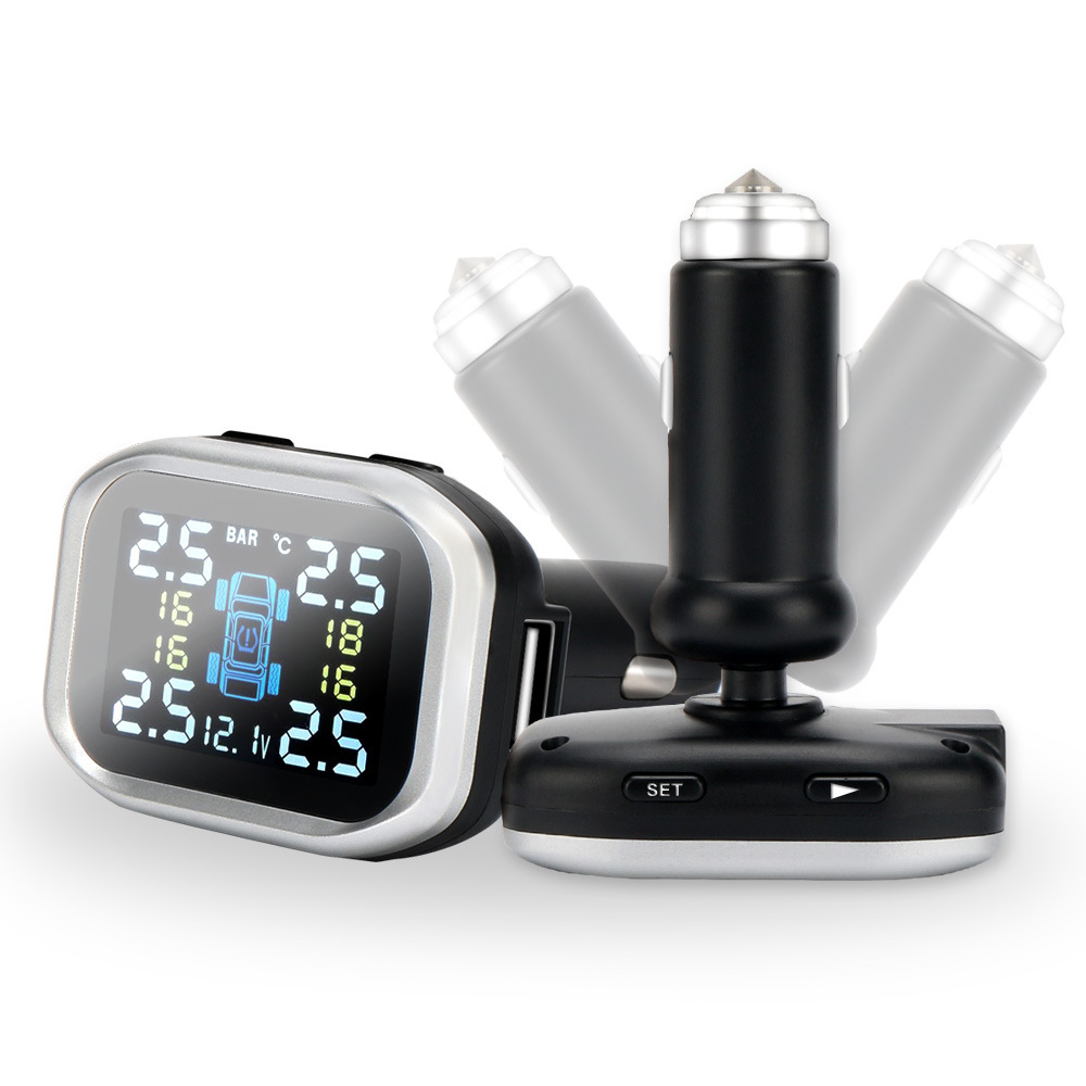 담배 라이터 형 타이어 압력 모니터 탐지기 무선 U 자동차 충전 TPMS 4 륜 디스플레이 모니터링 탐지기