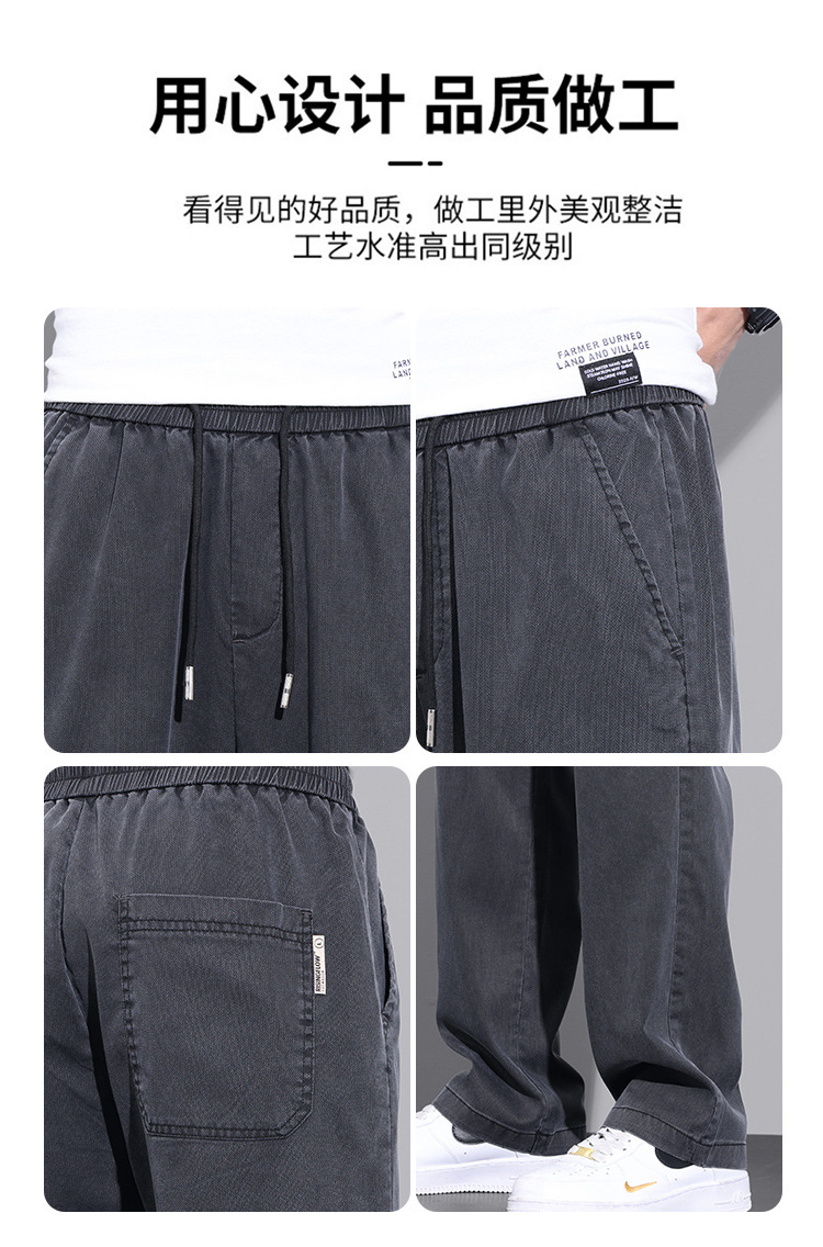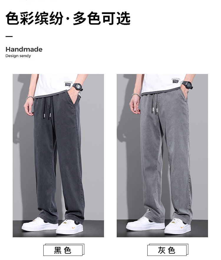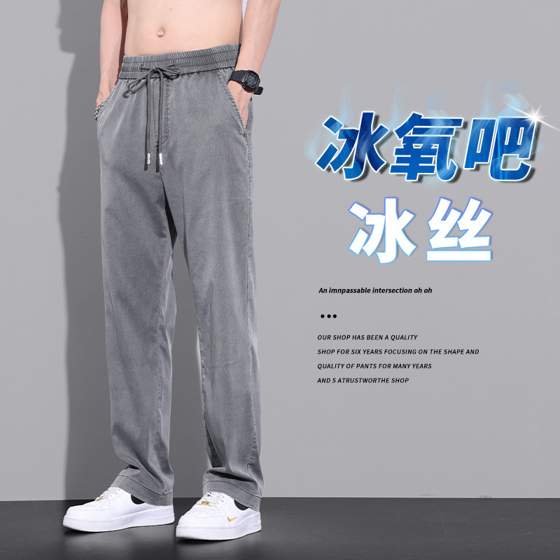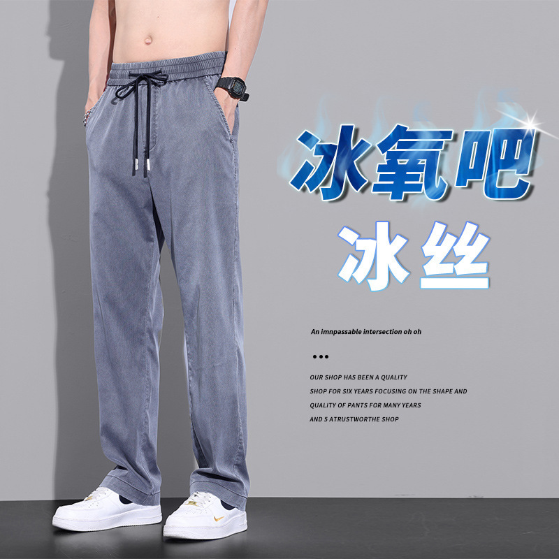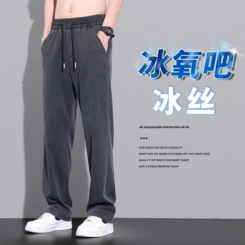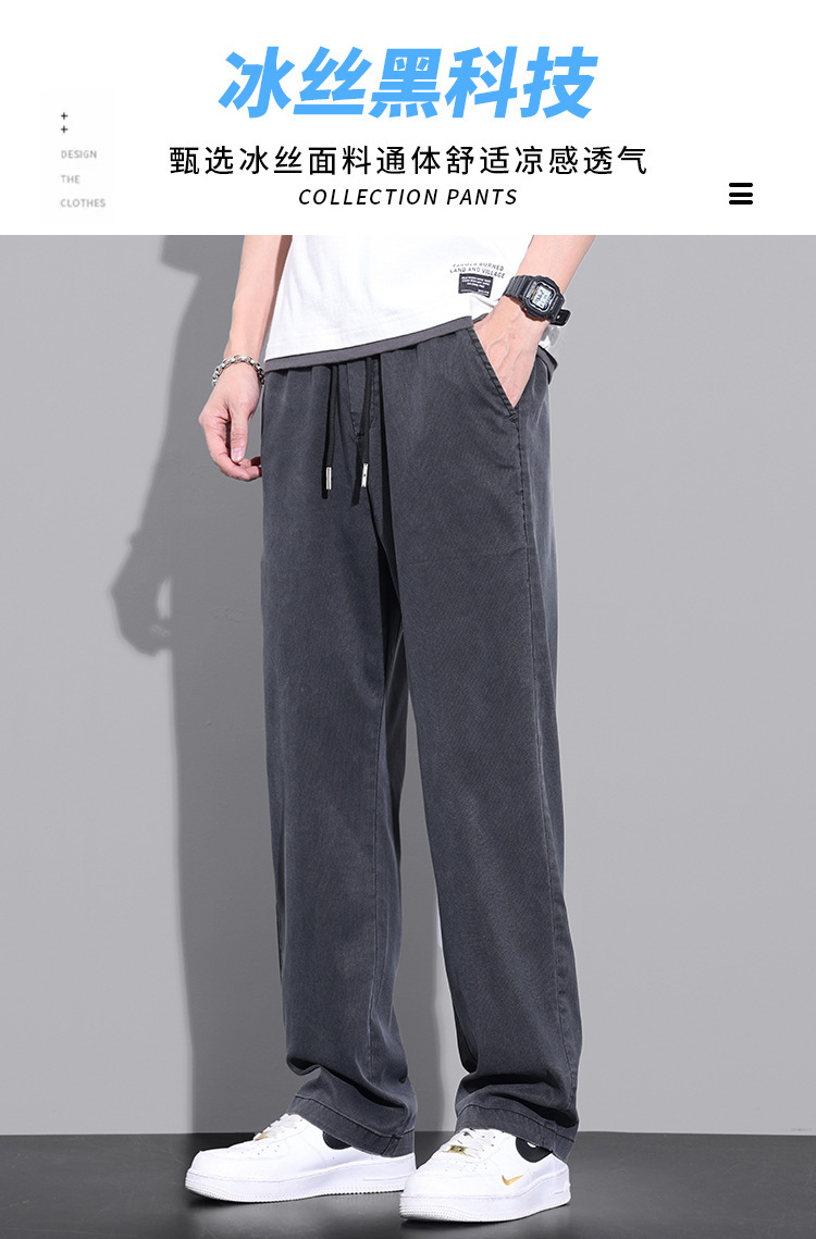 여름 얇은 얼음 실크 빠른 건조 바지 남자의 느슨한 고급 와이드 레그 스포츠 바지 인터넷-유명한 미국 캐주얼 바지 남자 긴 바지