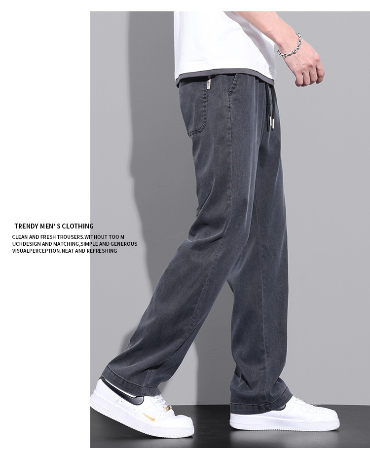 여름 얇은 얼음 실크 빠른 건조 바지 남자의 느슨한 고급 와이드 레그 스포츠 바지 인터넷-유명한 미국 캐주얼 바지 남자 긴 바지스토어 가기