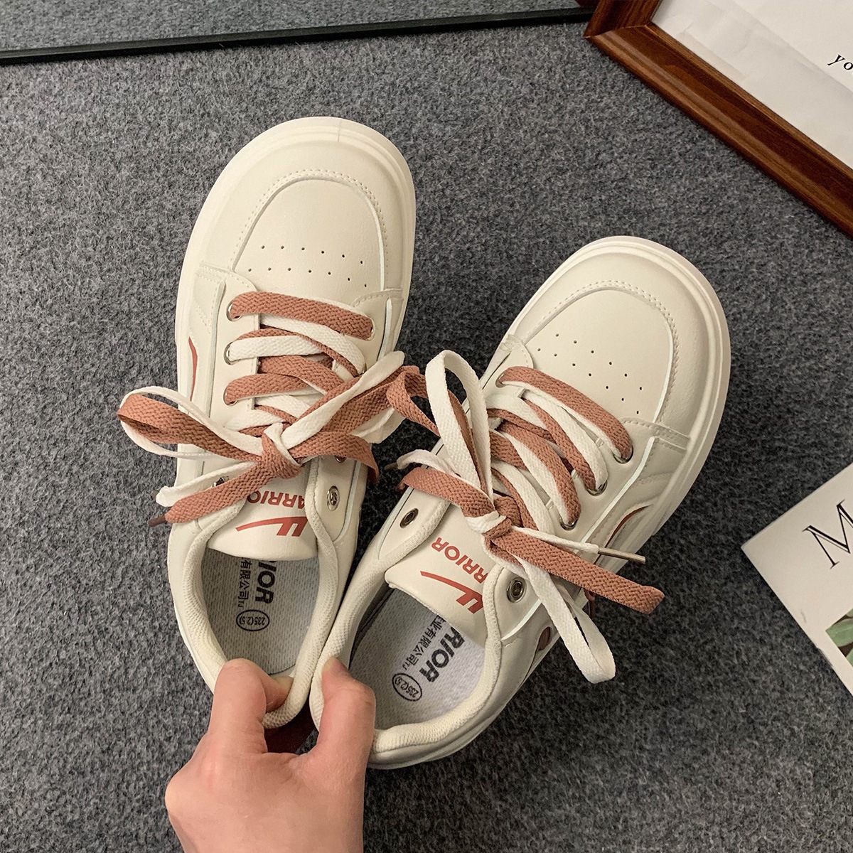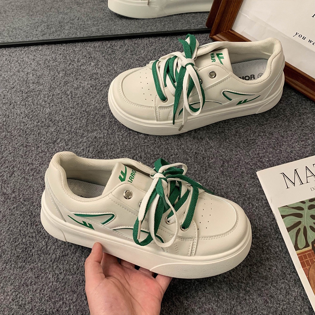 Huili 여성 신발 봄/여름 2024 새로운 로우 탑 두꺼운 밑창 다용도 스케이트 신발 캐주얼 신발 학생들을위한 트렌디 한 흰색 신발
