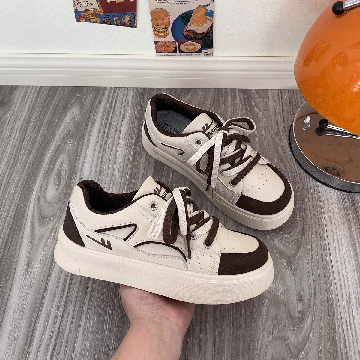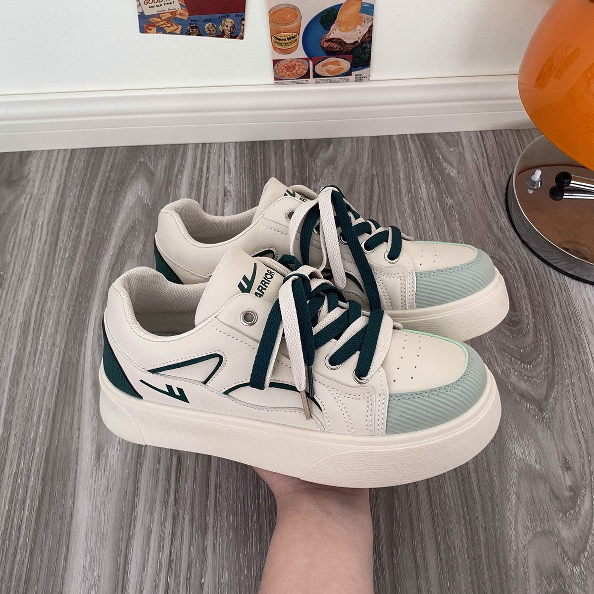 Huili 여성 신발 봄/여름 2024 새로운 로우 탑 두꺼운 밑창 다용도 스케이트 신발 캐주얼 신발 학생들을위한 트렌디 한 흰색 신발스토어 가기