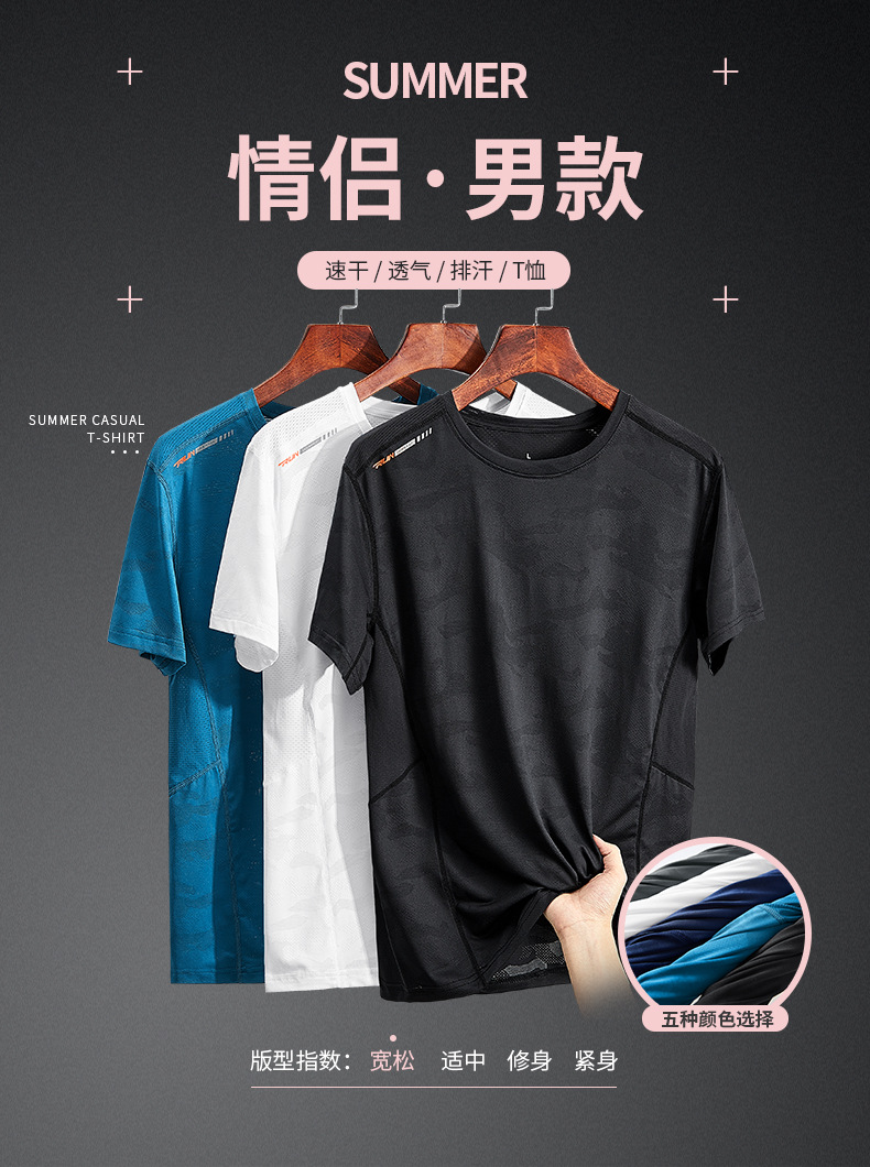 2025 새로운 야외 빠른 건조 티셔츠 남성용 반팔 티셔츠 라운드 넥 커플의 스포츠 승마 팀 스포츠 티셔츠