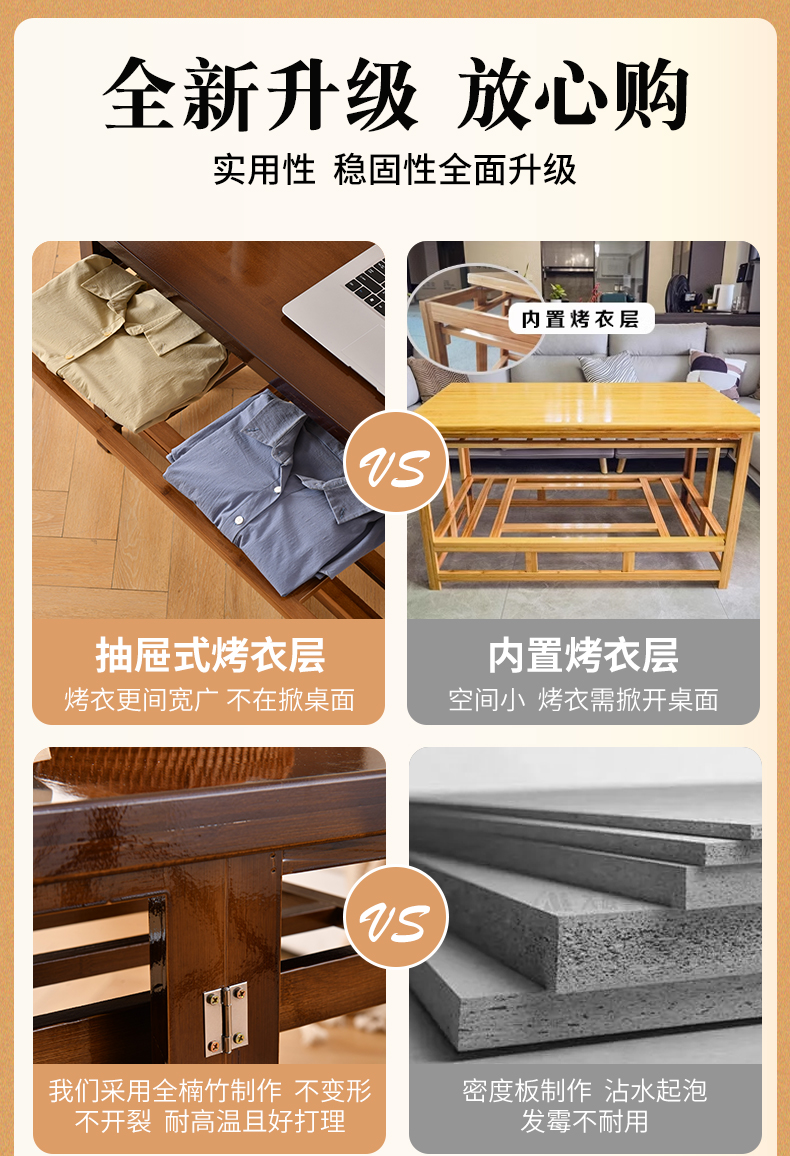 M & 베이킹 테이블 가정용 직사각형 간단한 다기능 접이식 베이킹 랙 대나무 1.2 m 겨울 난방 테이블