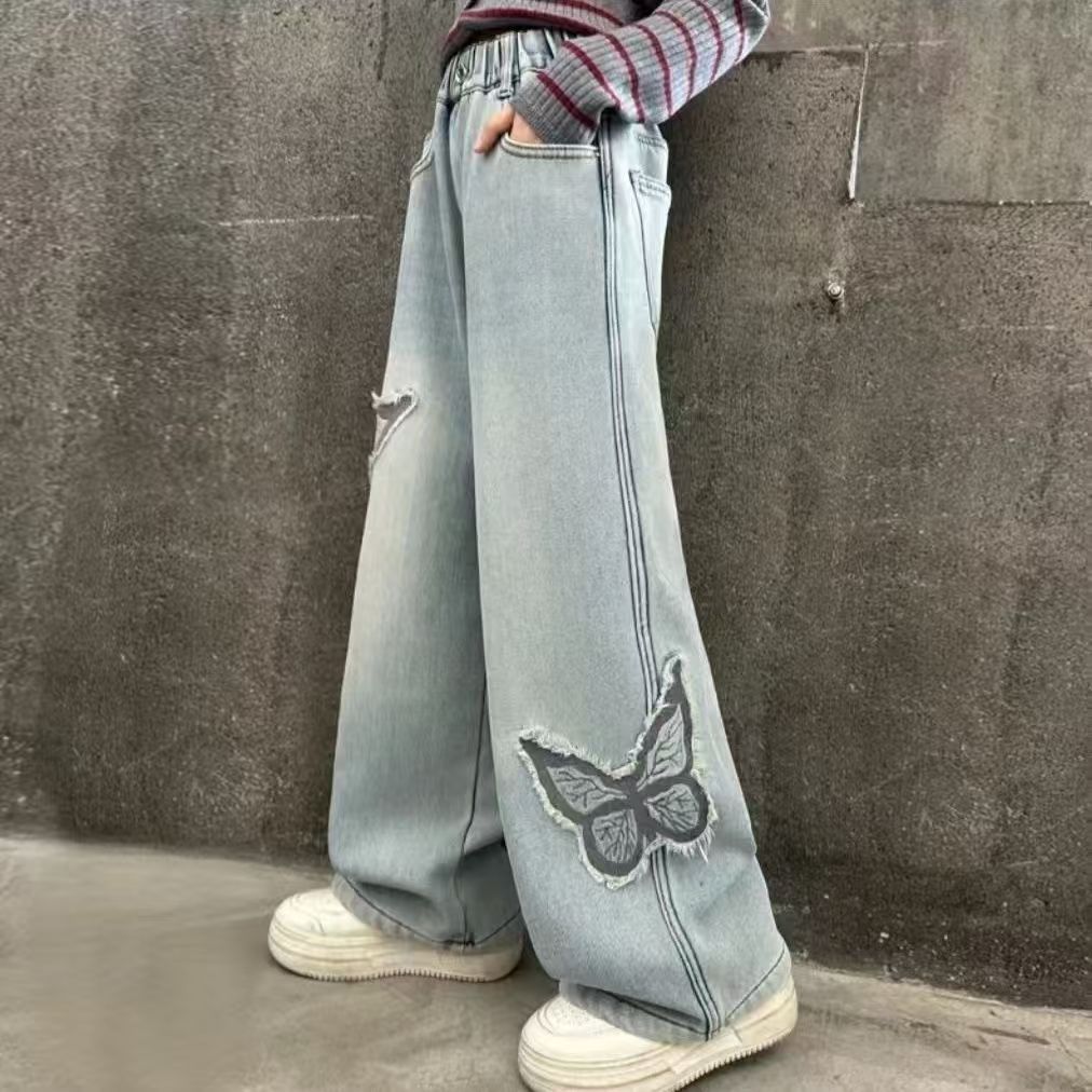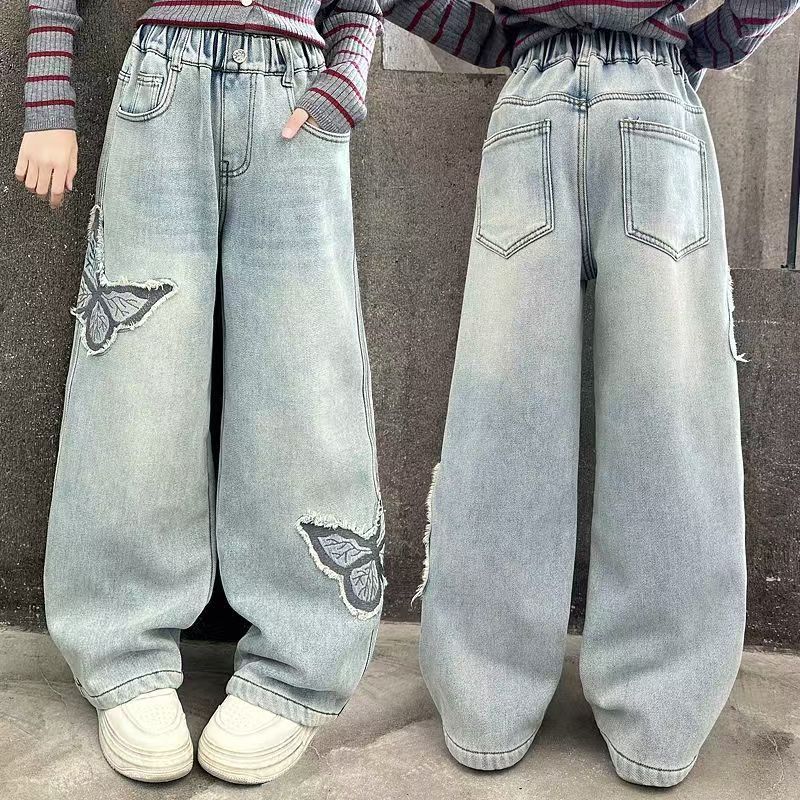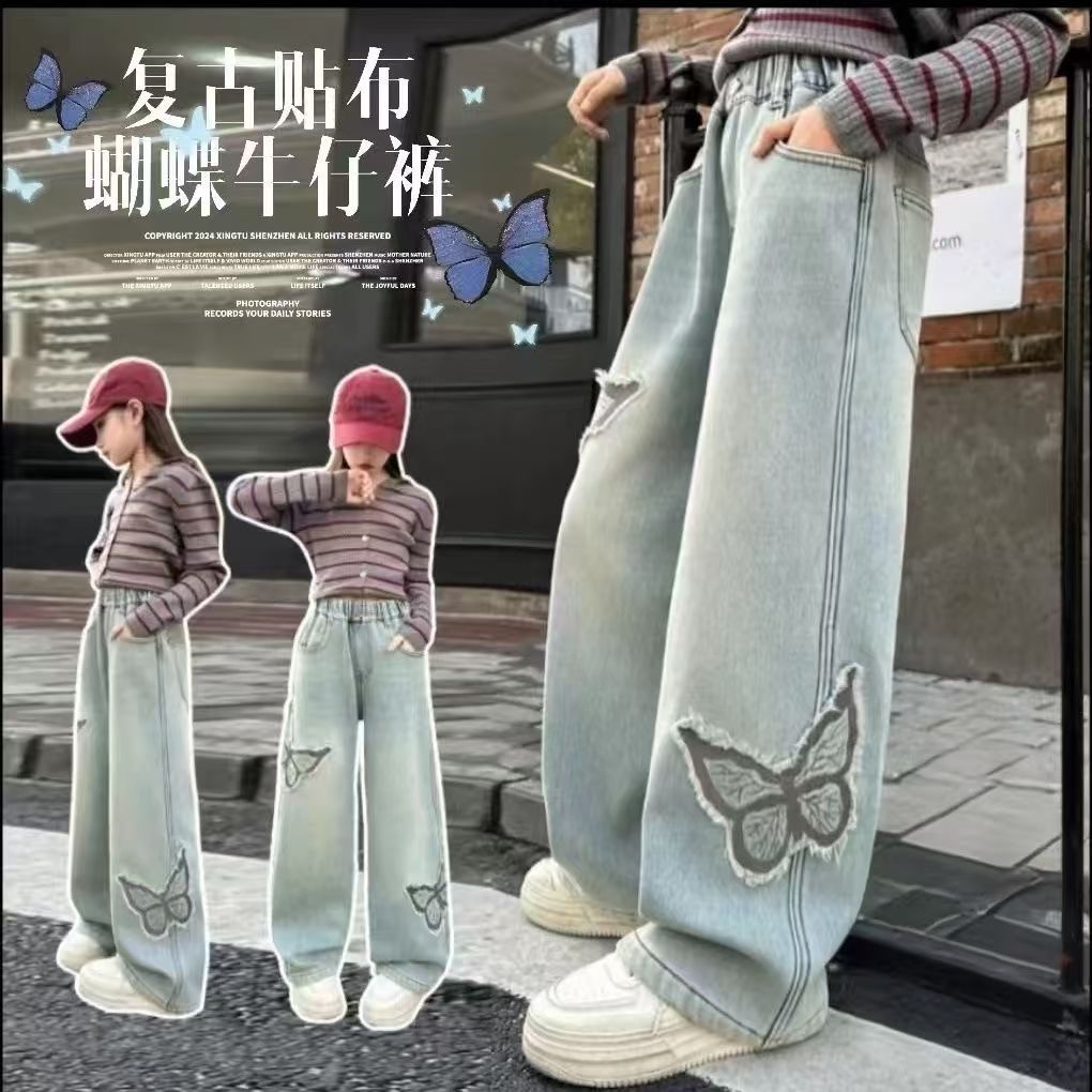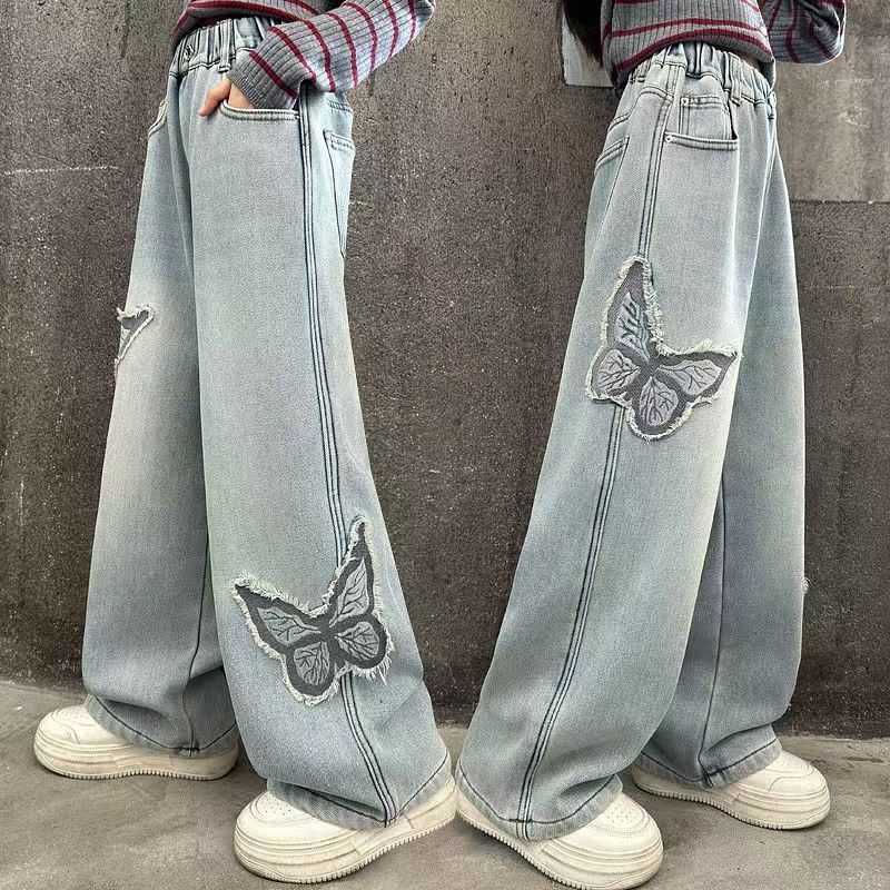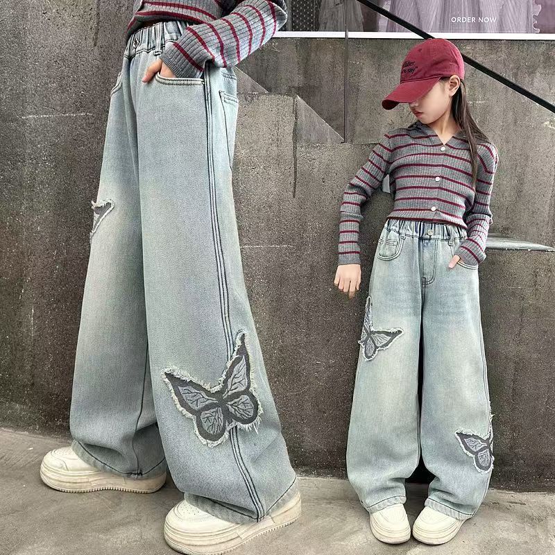 소녀 2025 봄 데님 넓은 다리 바지 어린이 청바지 얇은 직선 다리 바지 높은 허리 부드럽고 편안한스토어 가기