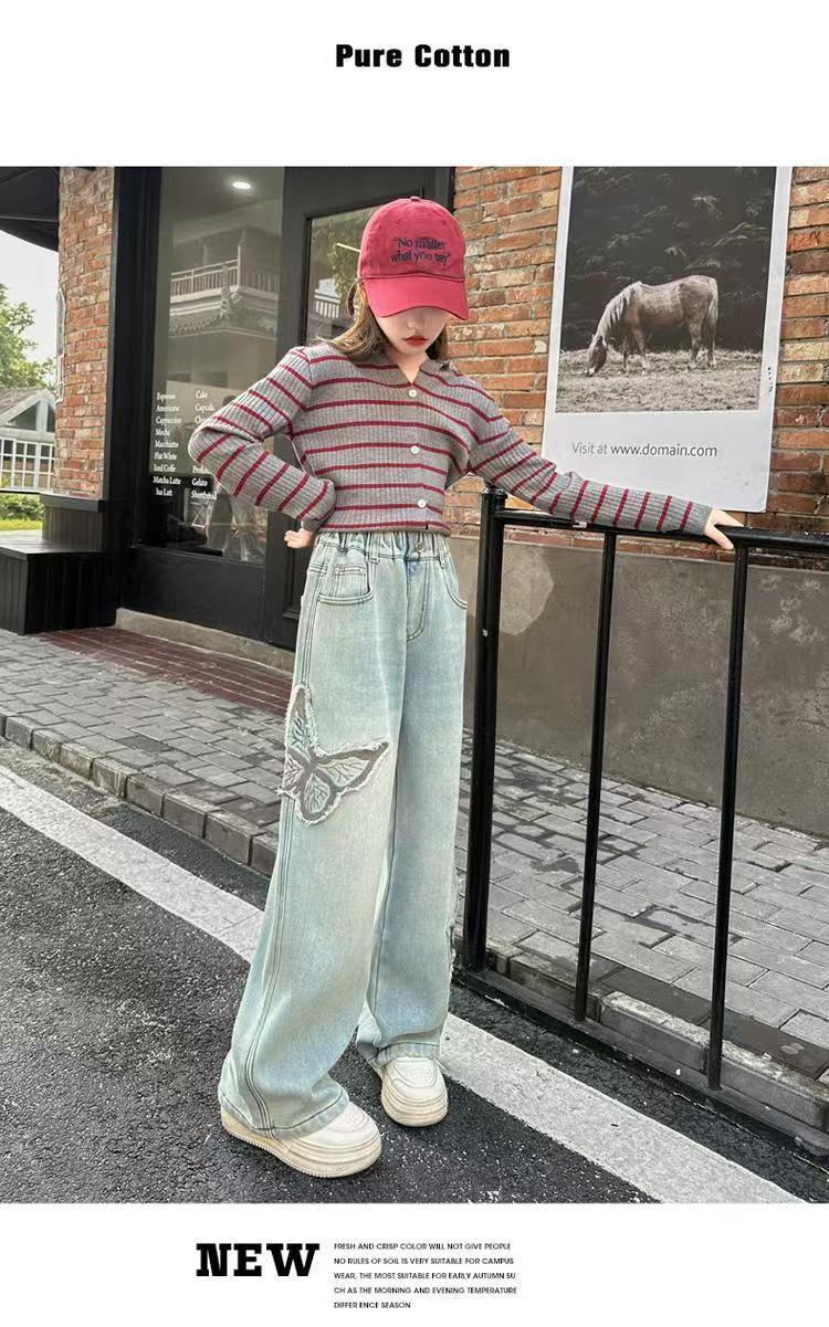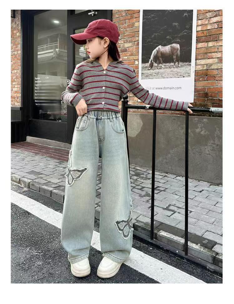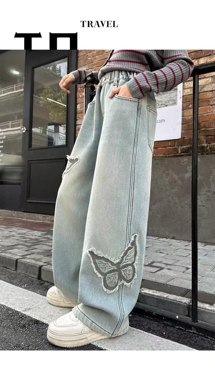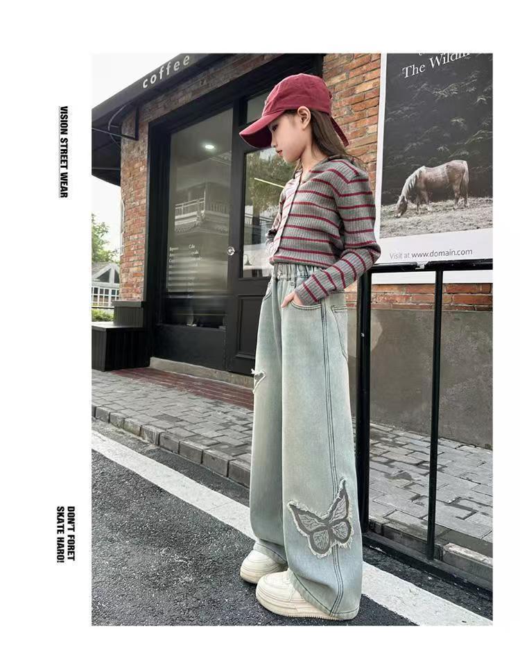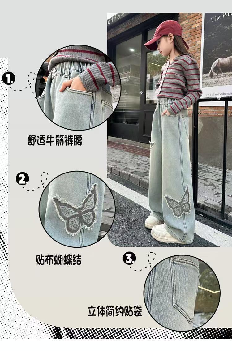 소녀 2025 봄 데님 넓은 다리 바지 어린이 청바지 얇은 직선 다리 바지 높은 허리 부드럽고 편안한스토어 가기