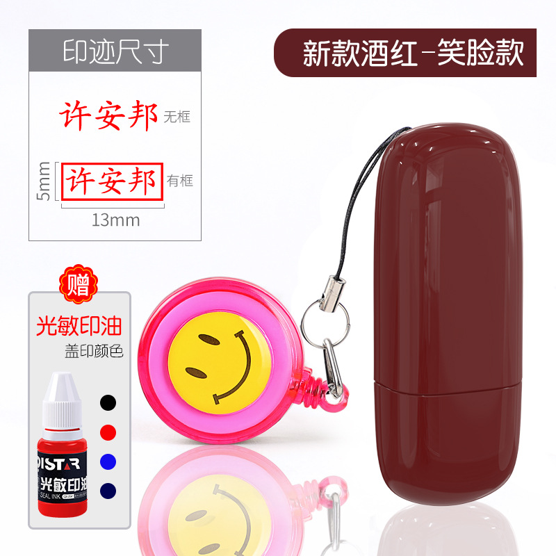 • 주문시 이름 + 상세페이지 폰트번호 + 스탬프 색상을 꼭 참고해주세요 핫셀링 모델 - 탑 스마일리 페이스 버클 - 버건디 (13*5mm)