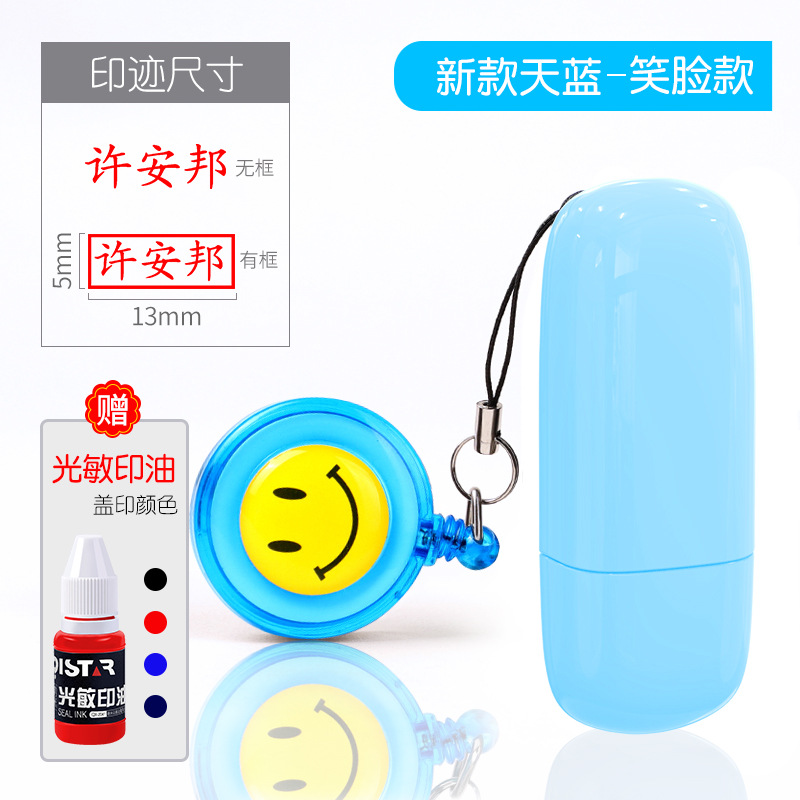 • 주문시 이름 + 상세페이지 폰트번호 + 스탬프 색상을 참고해주세요 핫셀링 모델 - 탑 스마일리 페이스 버클 - 스카이블루 (13*5mm)