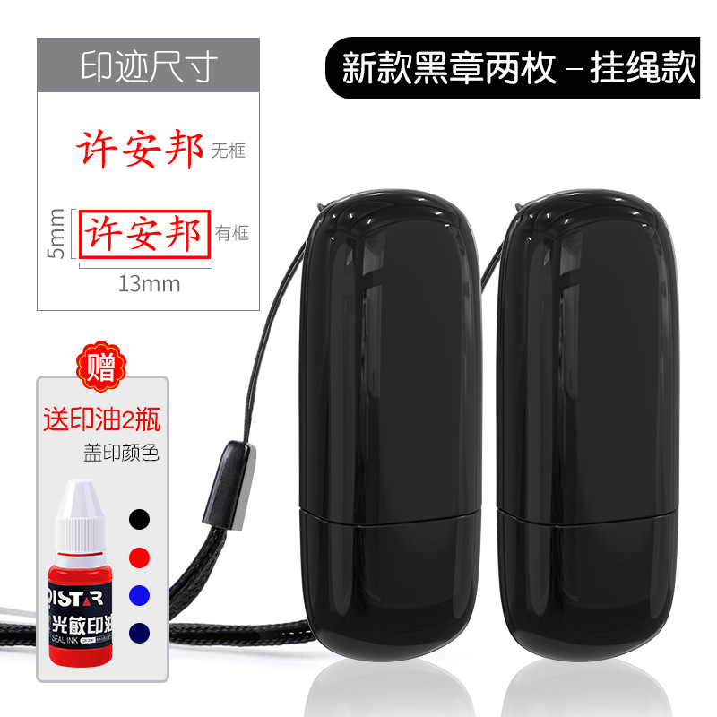 • (주문시 이름 + 상세페이지 폰트번호 + 스탬핑 색상을 꼭 기재해주세요) 핫셀링 모델 - 탑 랜야드 - 블랙 2개 + 프린팅 잉크 2병 (13*5mm)