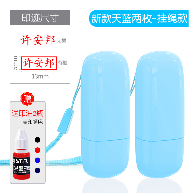 • (주문시 이름 + 상세페이지 폰트번호 + 스탬핑 색상을 꼭 기재해주세요) 핫셀링 모델 - 탑 랜야드 - 블루 2개 + 프린팅 잉크 2병 (13*5mm)