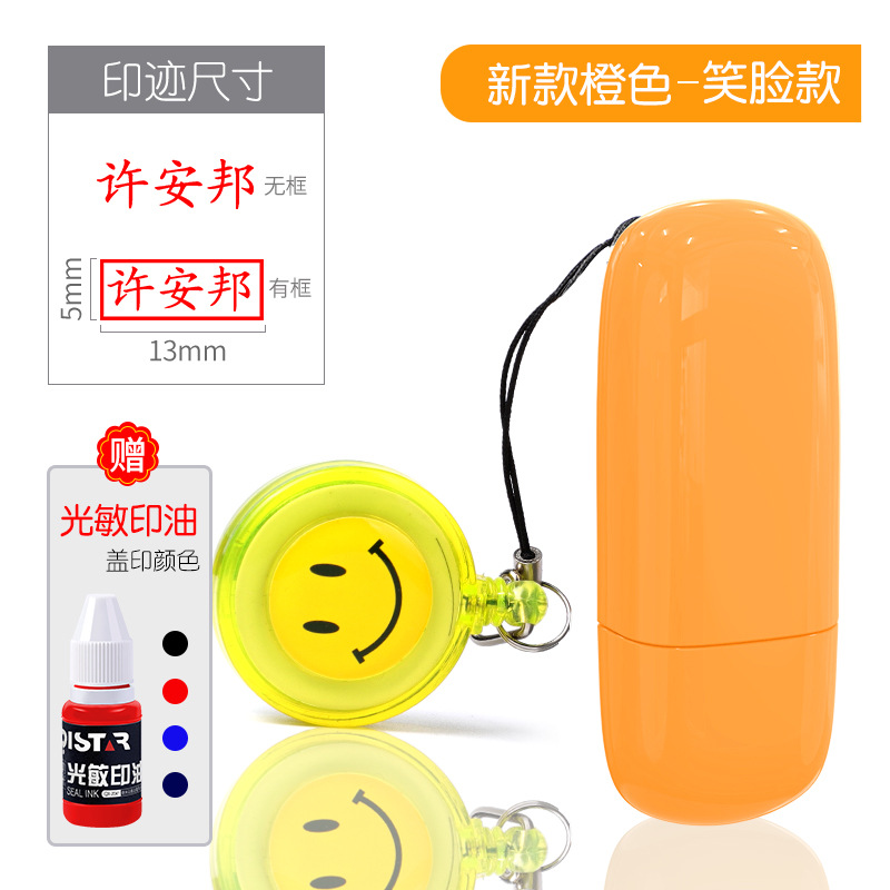 • 주문시 이름 + 상세페이지 폰트번호 + 스탬프 색상을 꼭 참고해주세요 핫셀링 모델 - 탑 스마일리 페이스 버클 - 오렌지 (13*5mm)