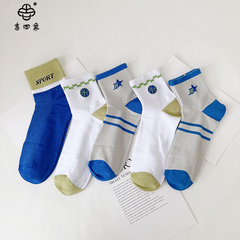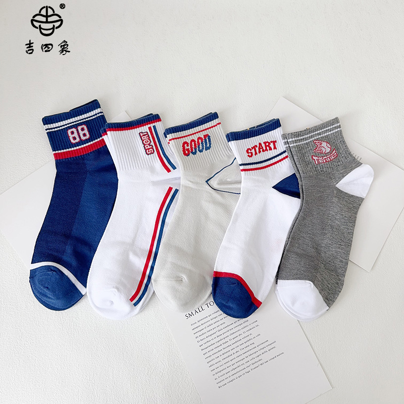 Ji Four Elephant Socks 남자 여름 새로운 메쉬 통기성 트렌디 브랜드 레터 미드 튜브 양말 빗 코튼 캐주얼 스포츠 남자 양말스토어 가기