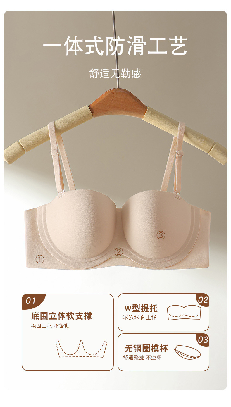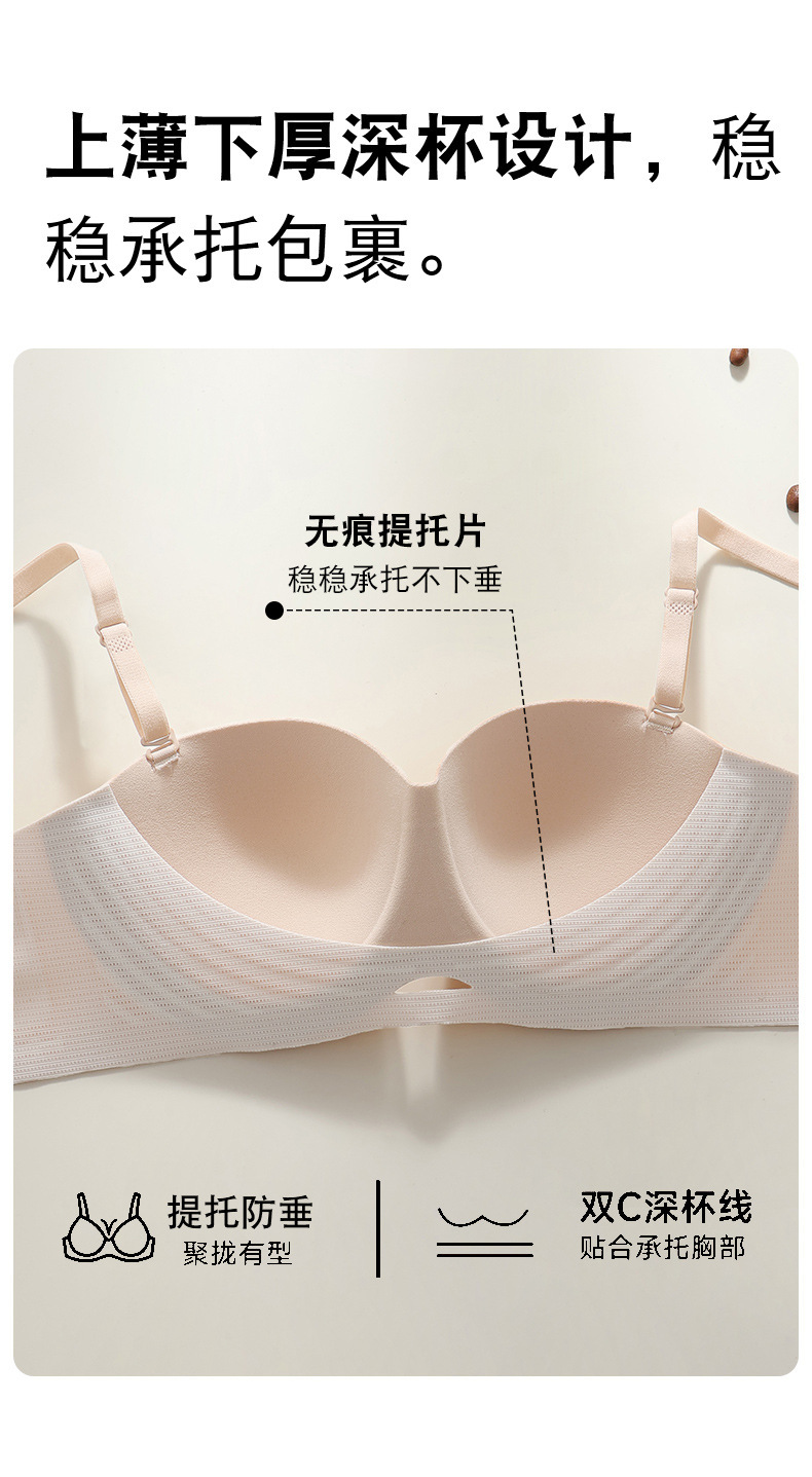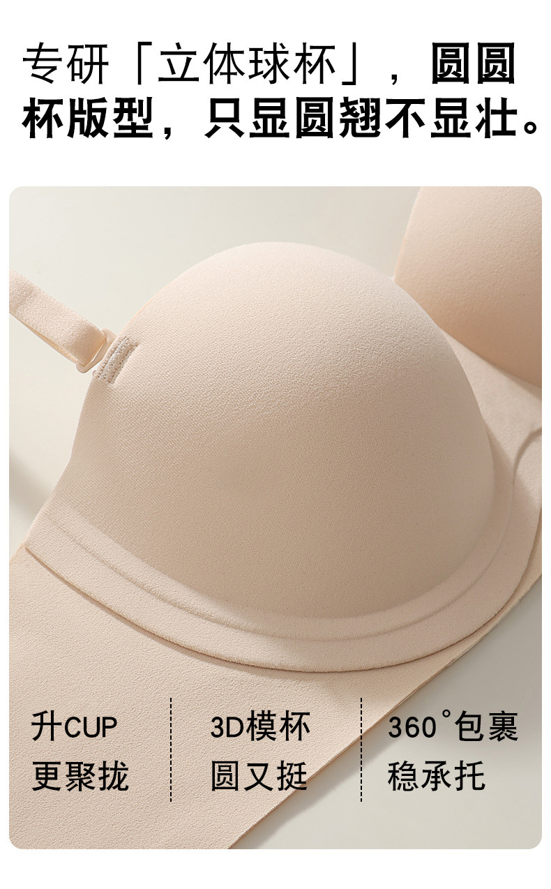 8832 원활한 등 작은 달걀 끈이없는 하프 컵 속옷 3 차원 부드러운 지원 미끄럼 통기성 사이드 브라