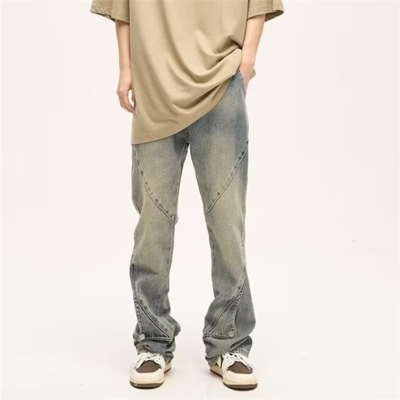 느슨한 청바지 남성 패션 브랜드 미국 스타일 하이 스트리트 분위기 여름 오버 사이즈 마이크로 와이드 다리 스트레이트 바지 남성