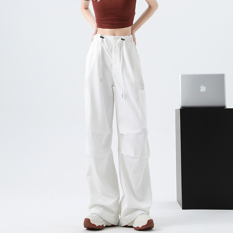 미국 스타일 작업복 바지 여성용 가을 겨울용 플리스 안감 두꺼운 하이웨이스트 루즈핏 조임끈 포켓 스포츠 등산 캐주얼 바지 여성용