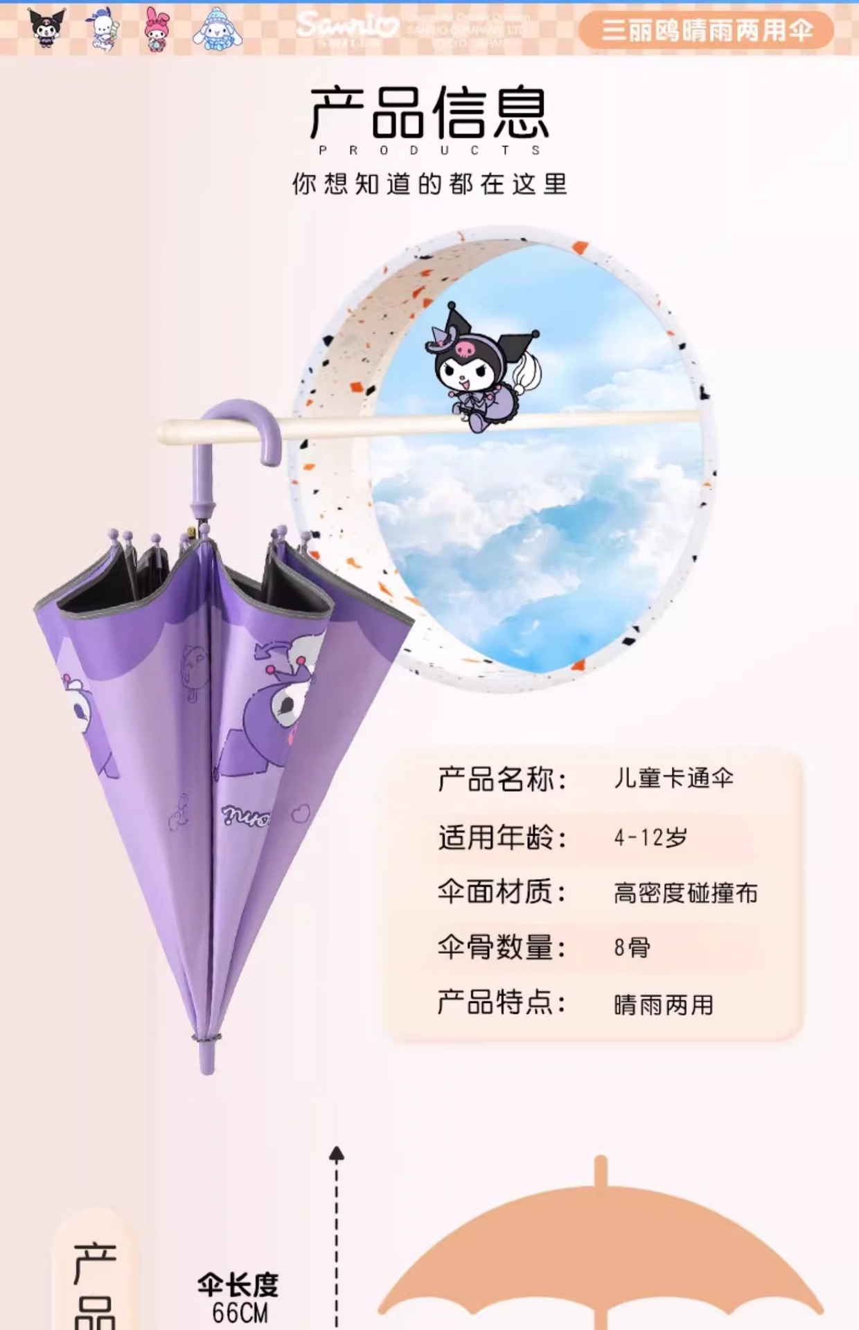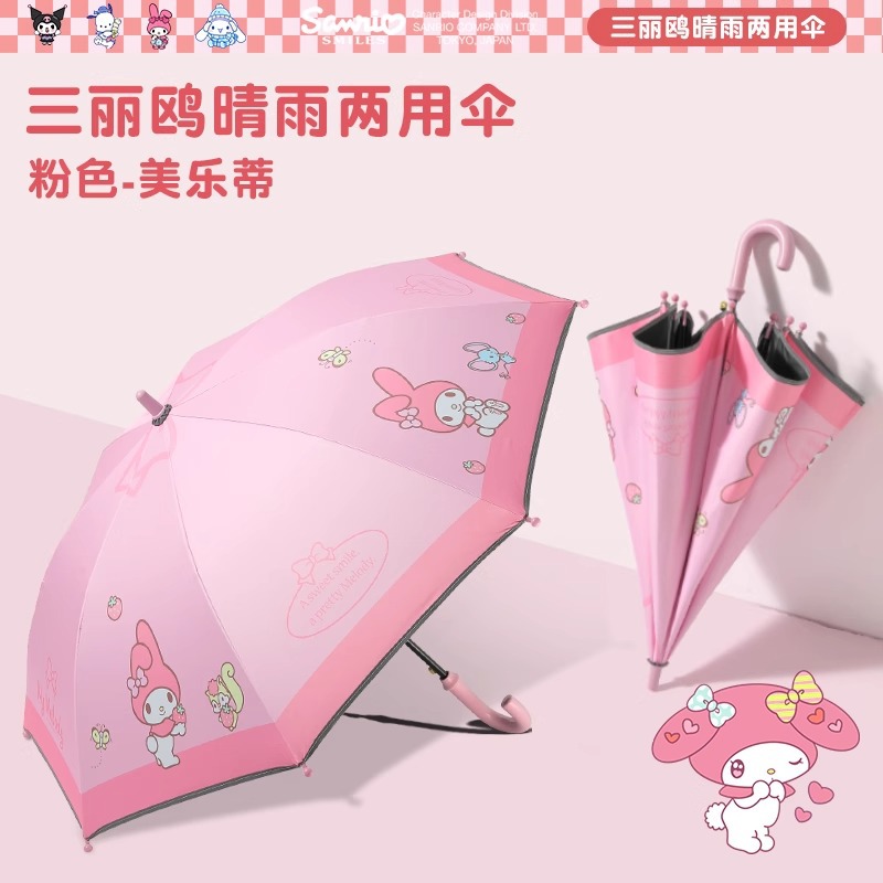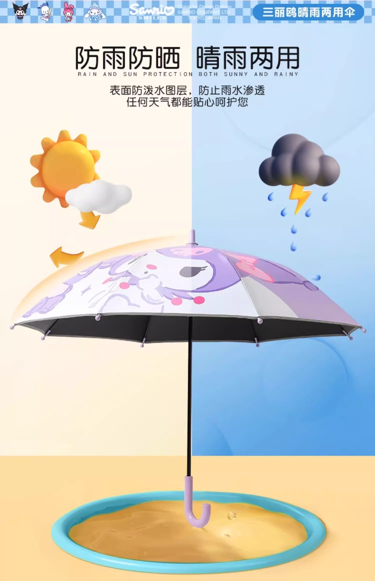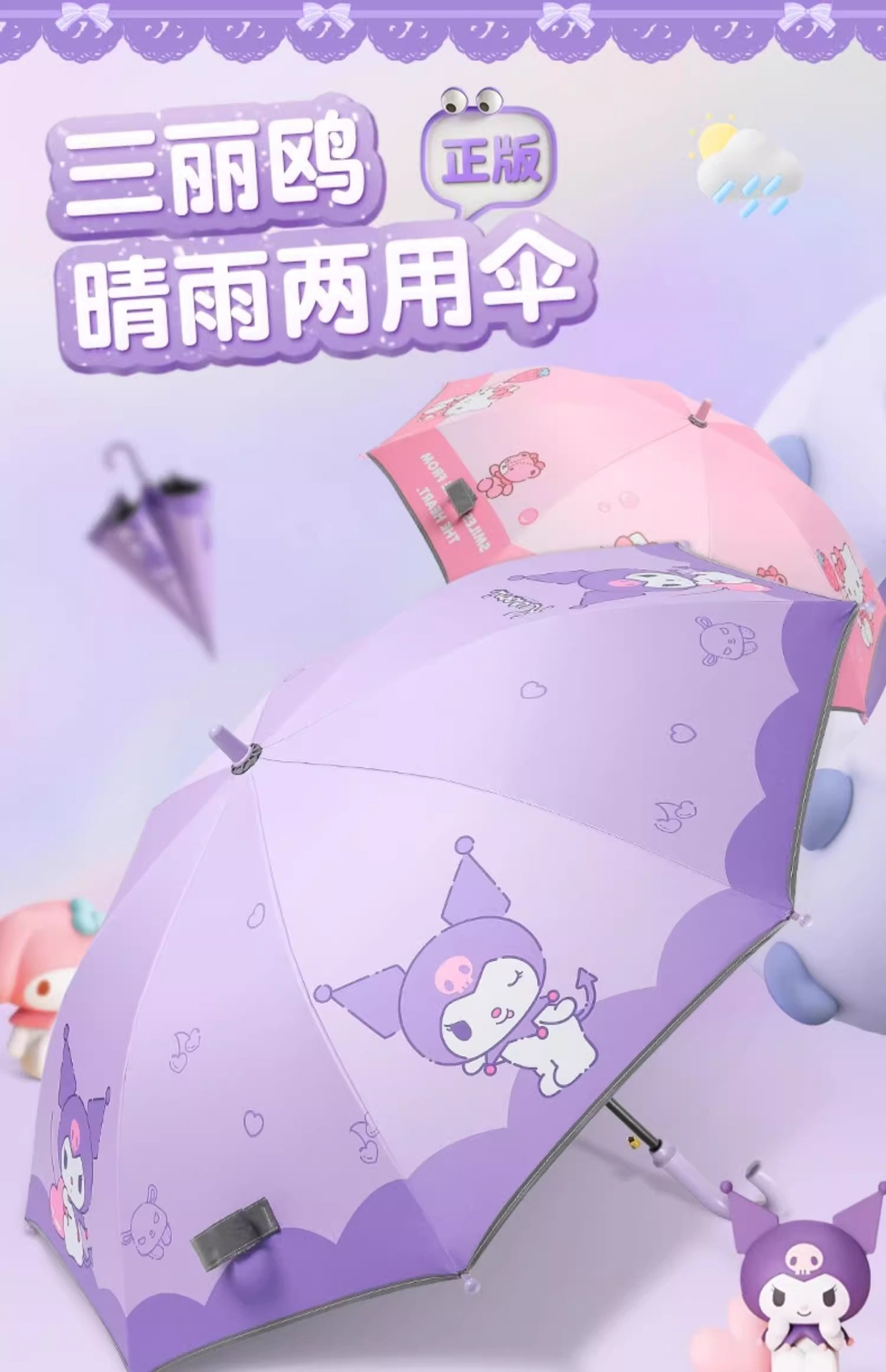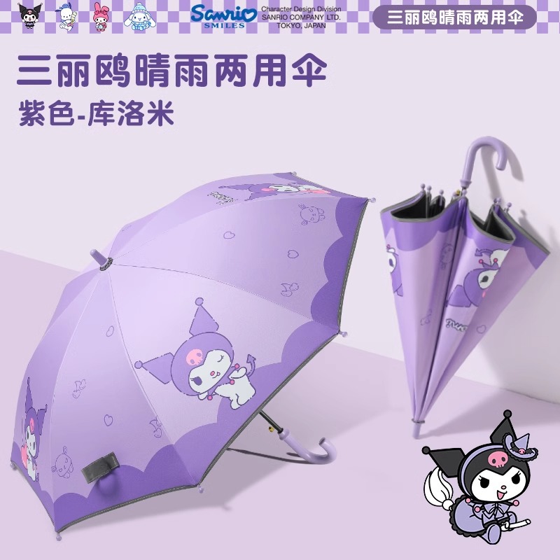 정품 공인 산리오 어린이 우산 쿨로 미 오른쪽 각도 여자 초등학생을위한 자동 차양 검은 고무 선 스크린 우산