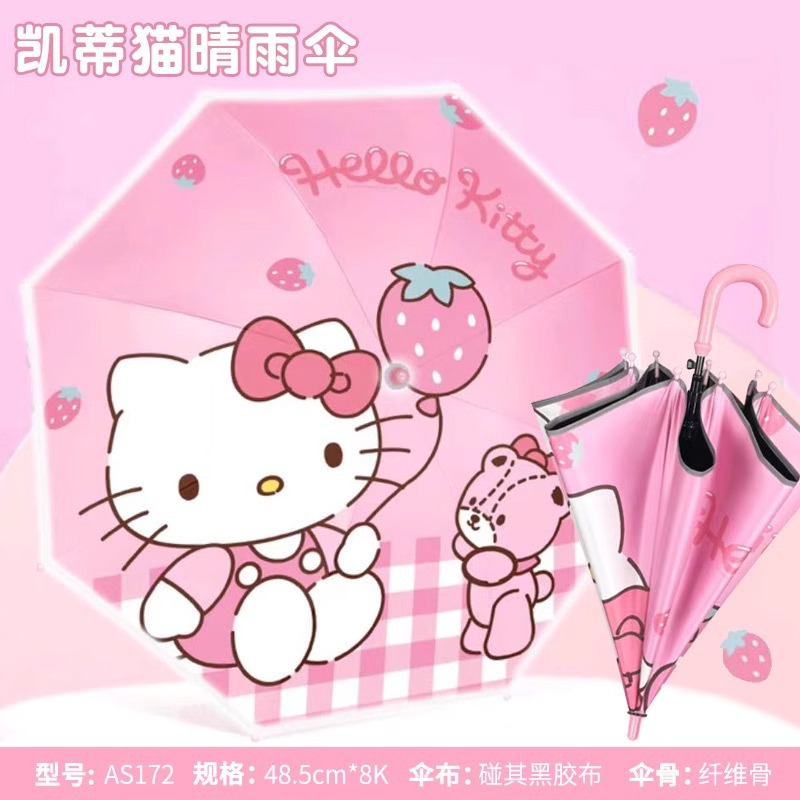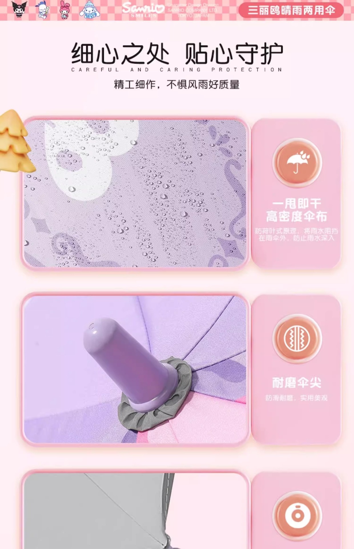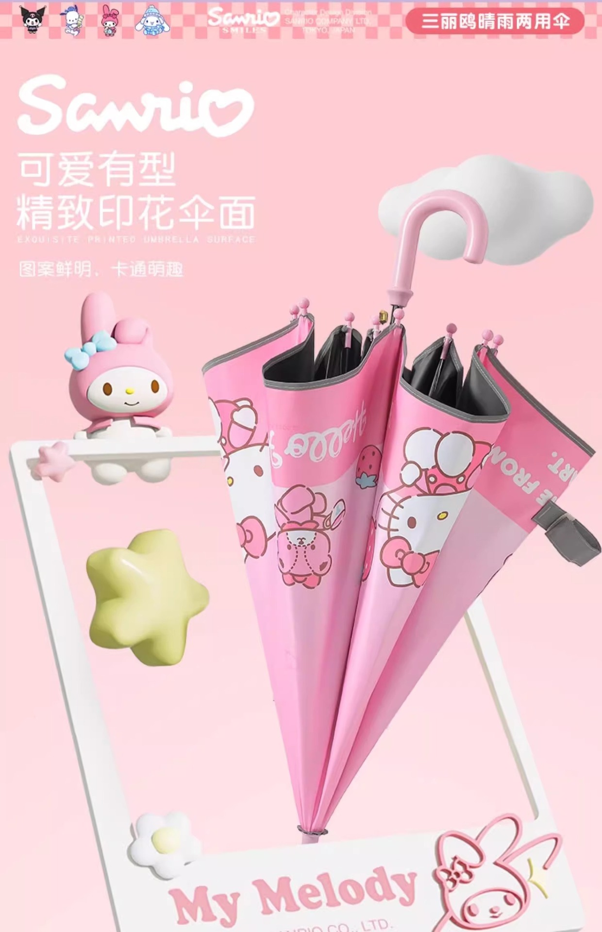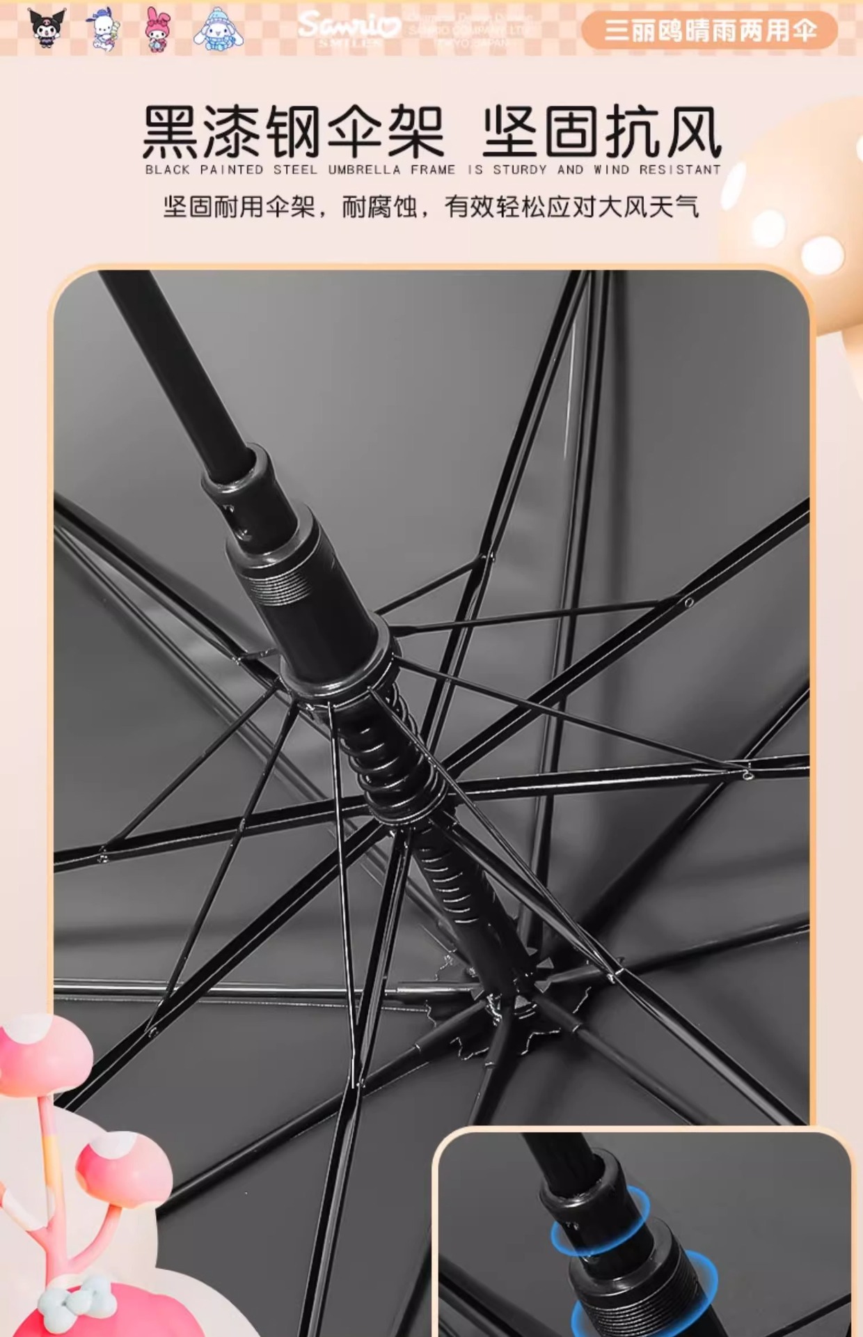 정품 공인 산리오 어린이 우산 쿨로 미 오른쪽 각도 여자 초등학생을위한 자동 차양 검은 고무 선 스크린 우산