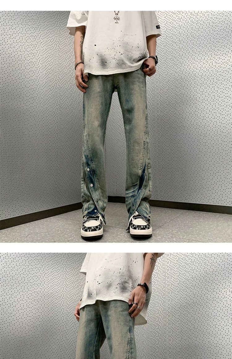 미국식 하이 스트리트 힙합 트렌디 브랜드 청바지 남성용 루즈 스트레이트 세척 올드 브레스트 디자인 마이크로 팬츠