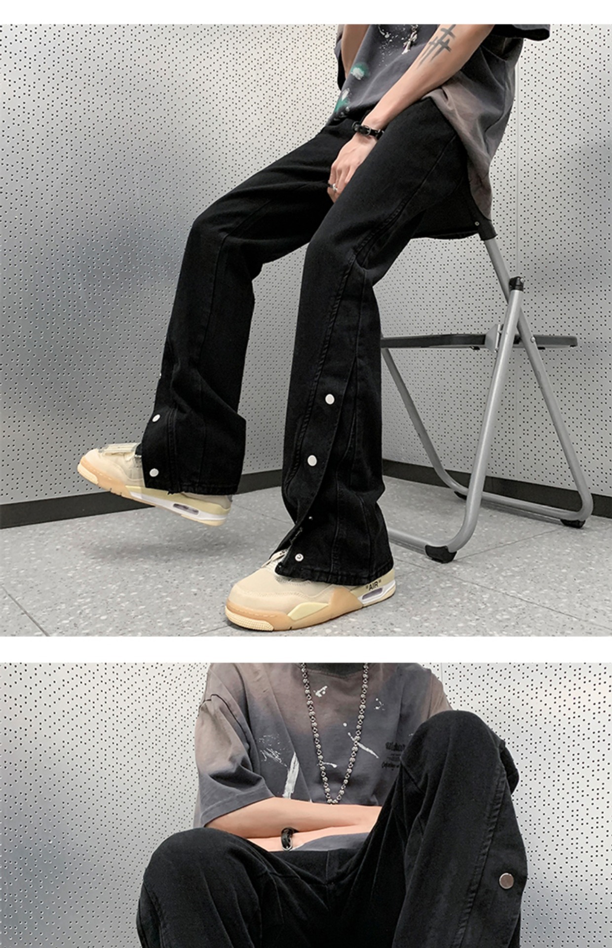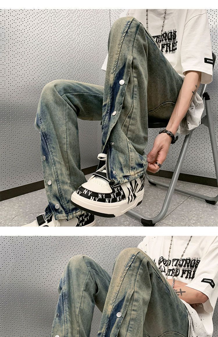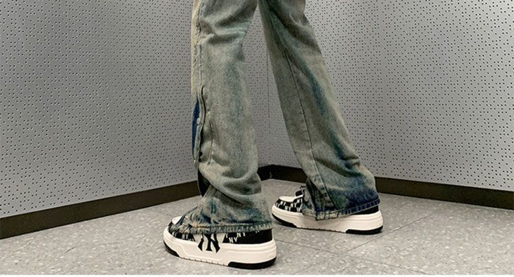 미국식 하이 스트리트 힙합 트렌디 브랜드 청바지 남성용 루즈 스트레이트 세척 올드 브레스트 디자인 마이크로 팬츠스토어 가기