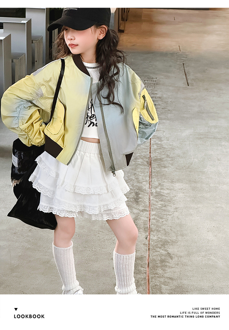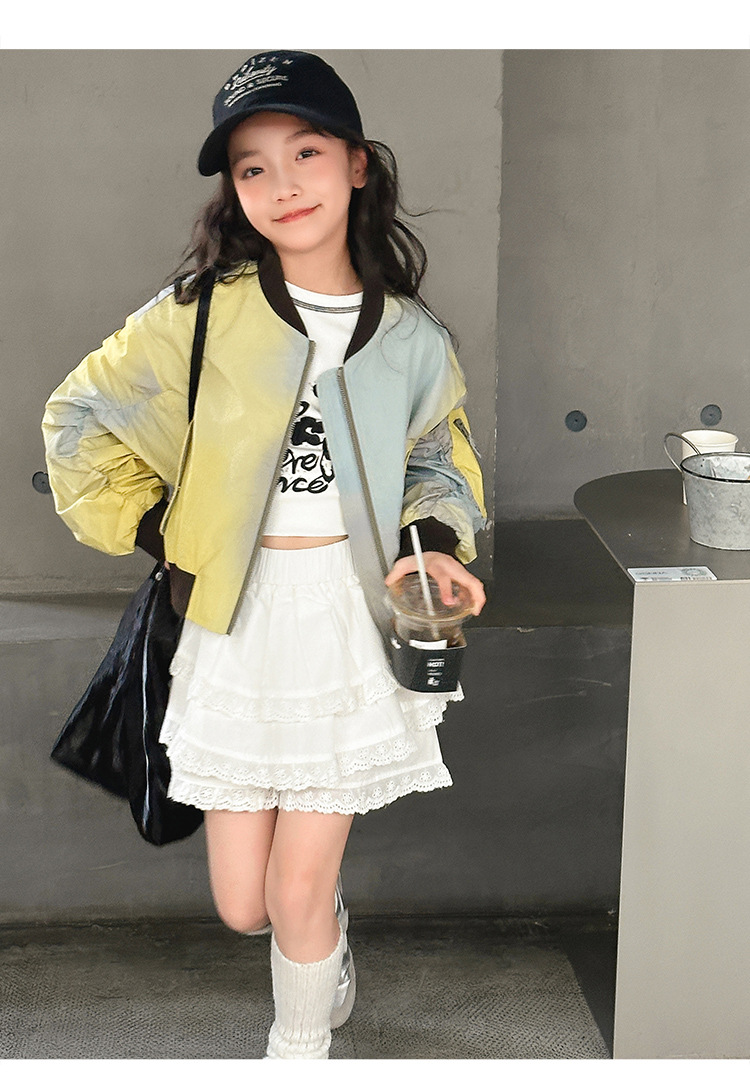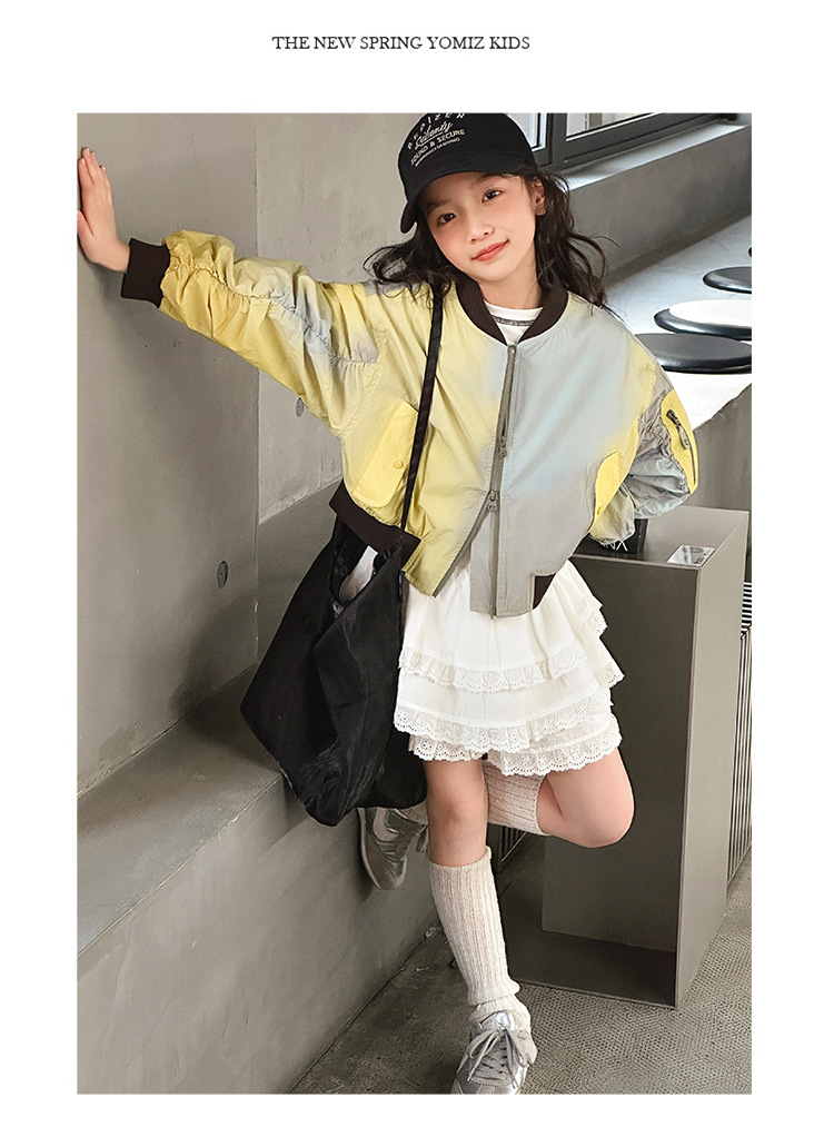 소녀 그라디언트 코트 비행가 재킷 코트 2025 봄 새로운 스타일 중대형 어린이 느슨한 야구 세트 트렌디 한 봄과 가을스토어 가기