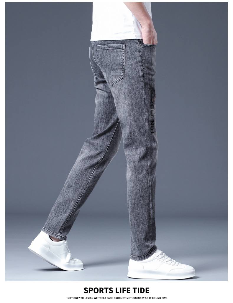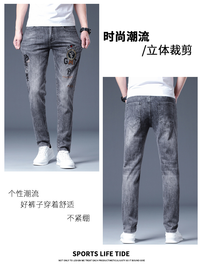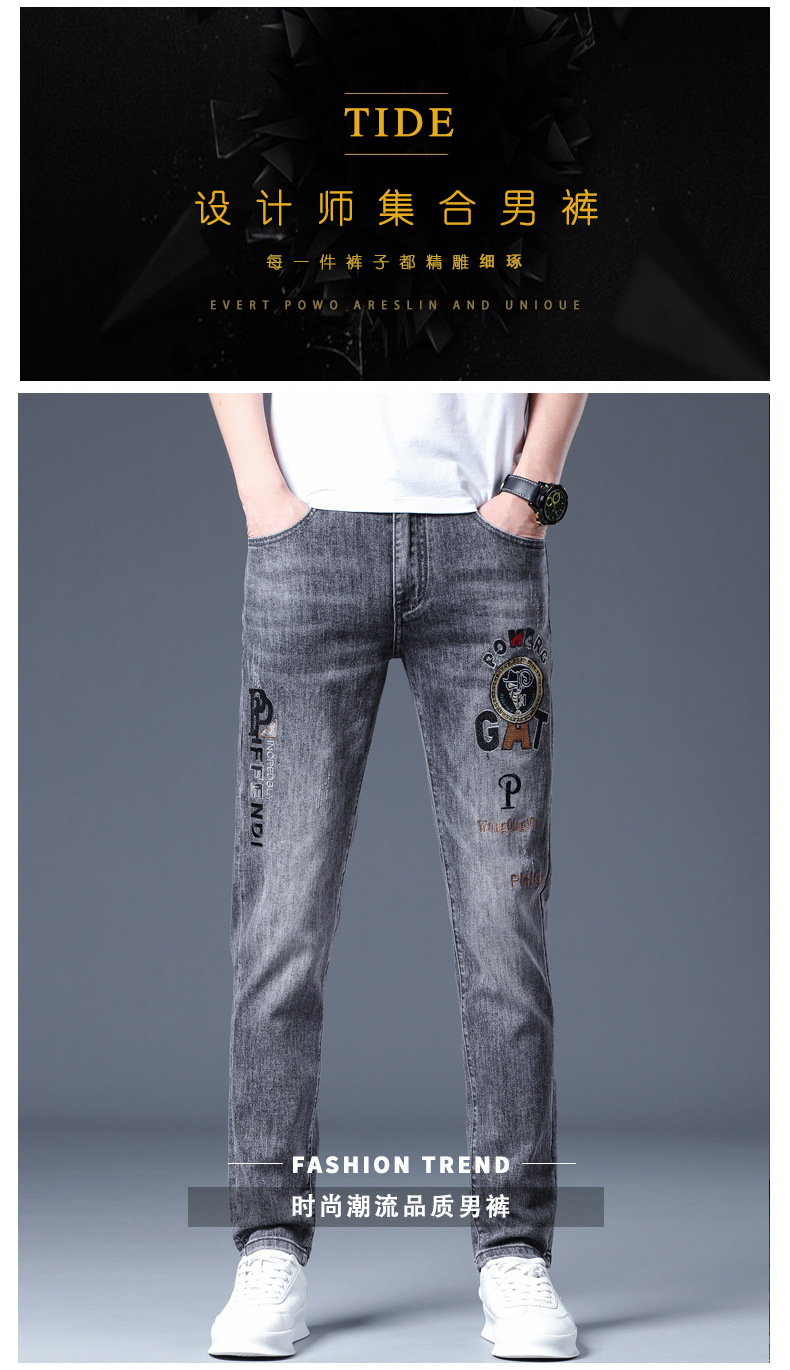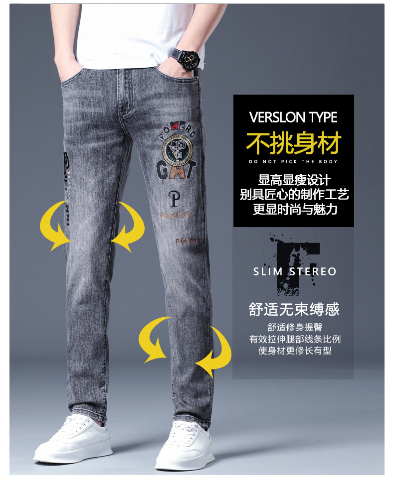 하이 엔드 소프트 자수 청바지 남성용 트렌디 얇은 라이트 그레이 슬림 핏 스키니 피트 2025 봄/여름 새로운스토어 가기
