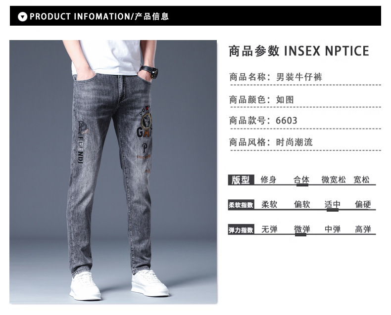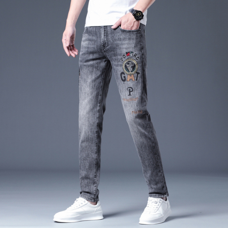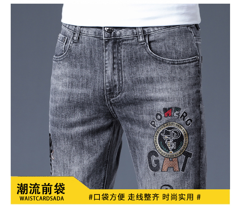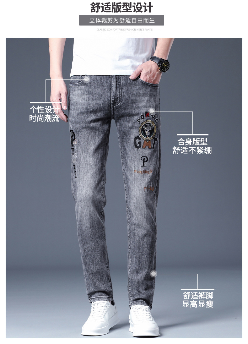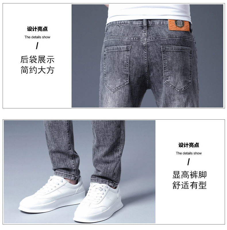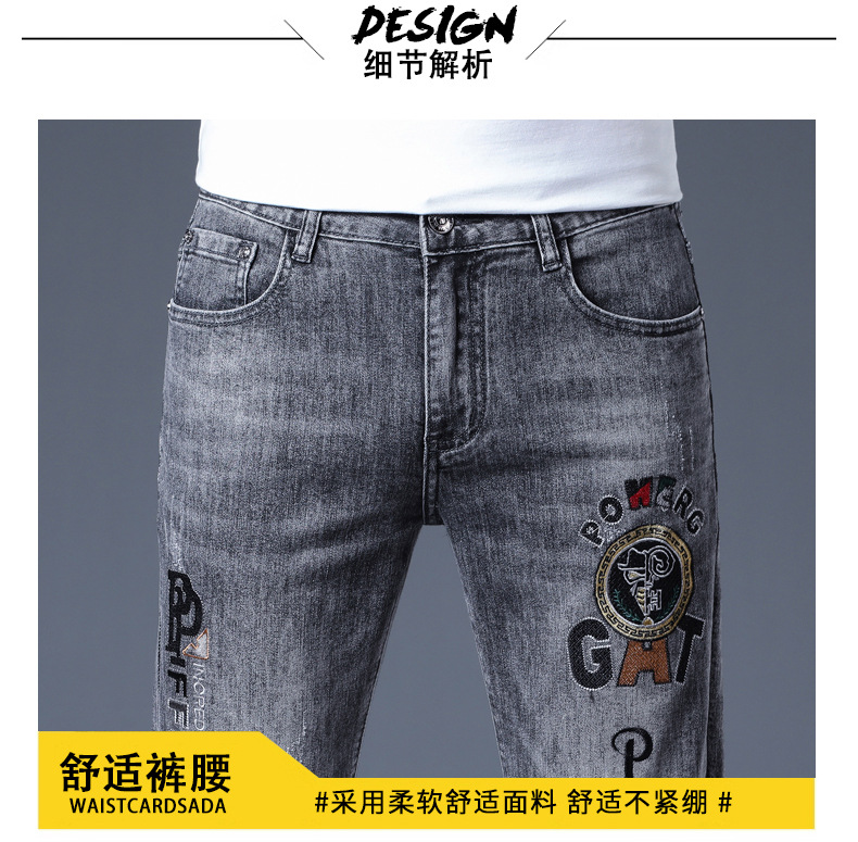 하이 엔드 소프트 자수 청바지 남성용 트렌디 얇은 라이트 그레이 슬림 핏 스키니 피트 2025 봄/여름 새로운스토어 가기