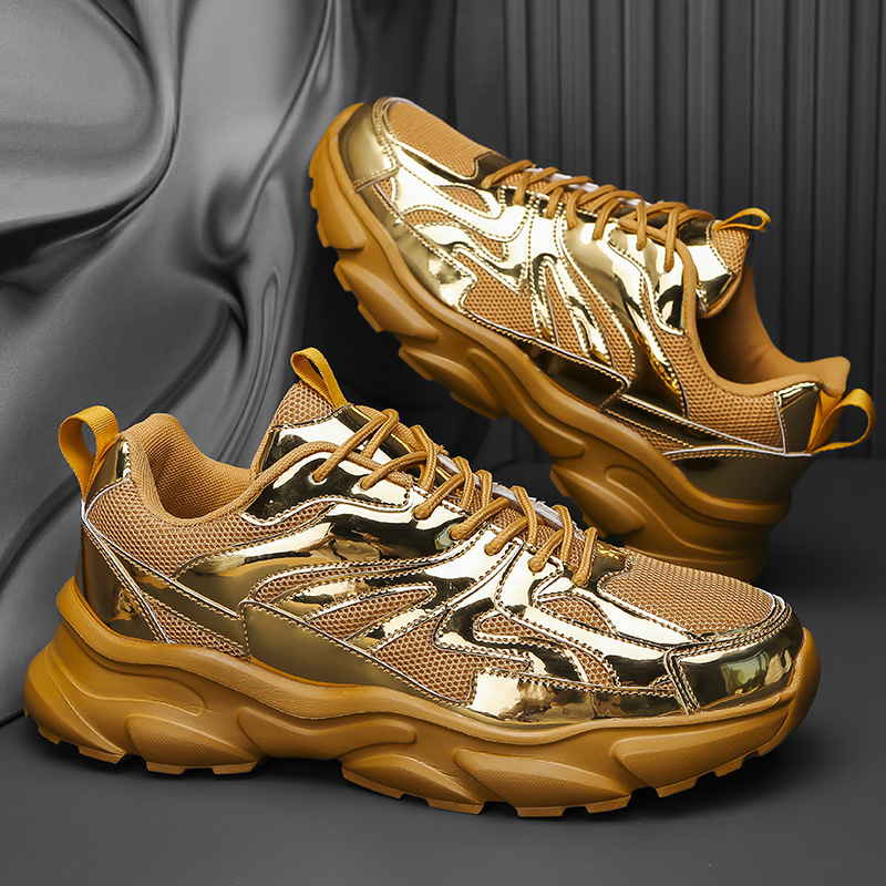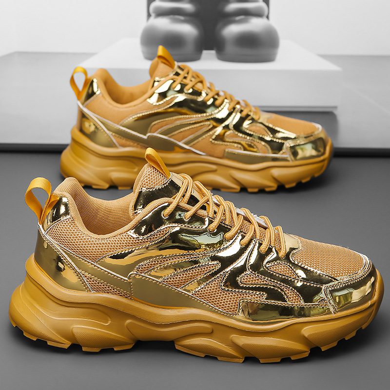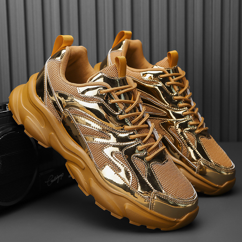 국경 간 플러스 사이즈 캐주얼 운동화 새로운 골드 남성 신발 메쉬 두꺼운 밑창 청소년 아빠 패션 신발 도매