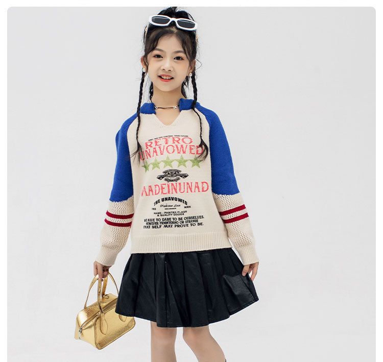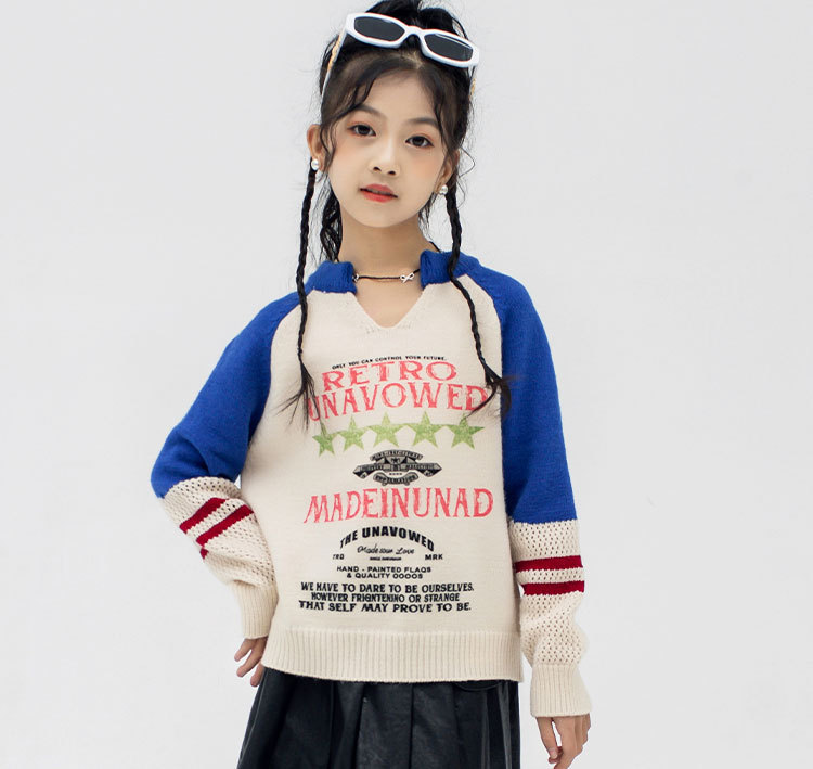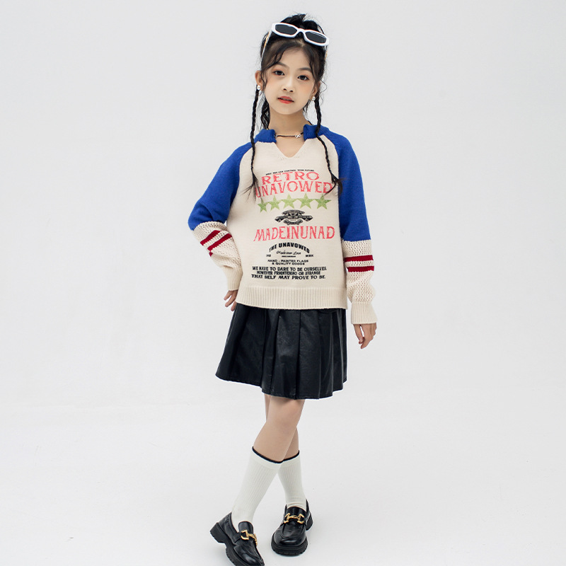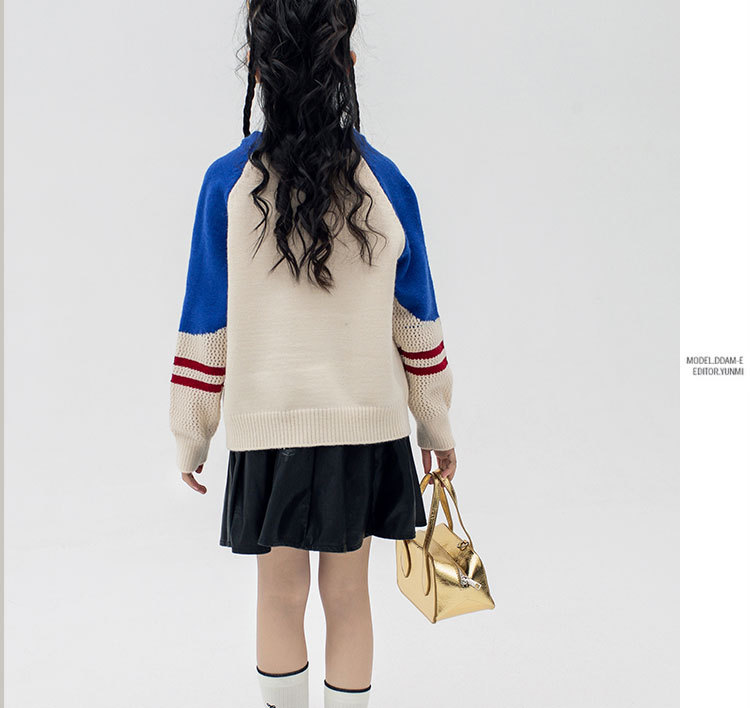 소녀의 봄과 가을 아이비 뉴 브라 블루 칼리지 스타일 스웨터 여성의 가을과 겨울 느슨한 슬리밍 게으른 할로우 탑