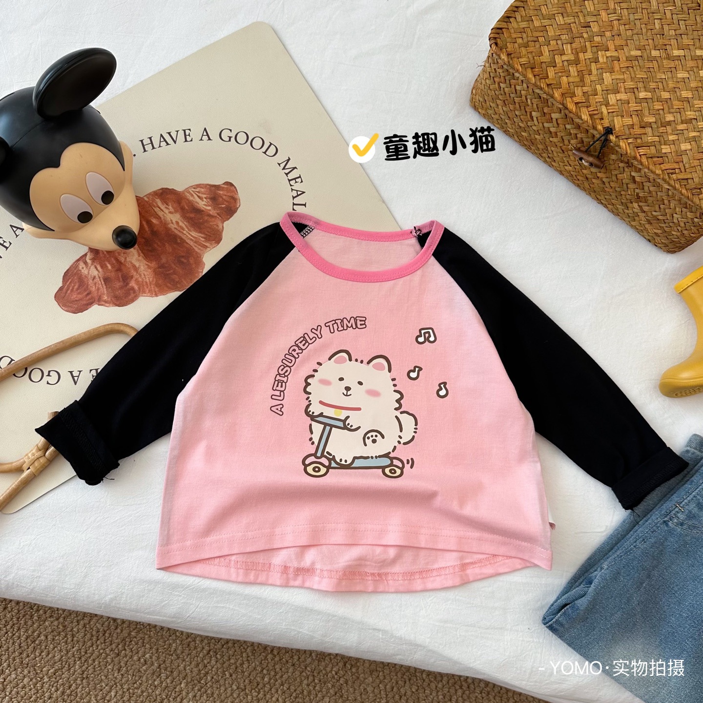 아동복 한국식 인스타그램 스타일 넝마 긴팔 티셔츠 남학생과 여학생 탑 어린이베이스 셔츠 올매치 통기성 퓨어 코튼 패셔너블 어린이스토어 가기