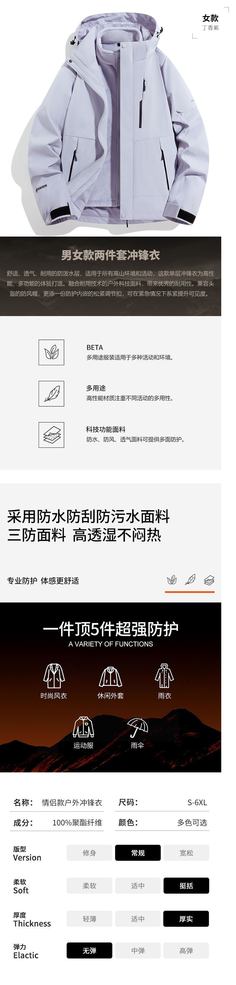 새로운 3 대 1 분리 가능한 재킷 야외 등산 방풍 방수 남녀 커플 재킷 후드 커플 재킷