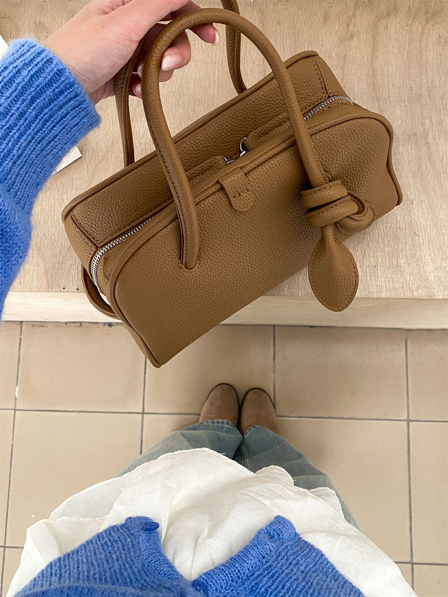 크로스보더 반투명 PU 가죽 보스턴백, 대용량 통근용 핸드백, 여성용 틈새 고급 직장인 핸드백스토어 가기