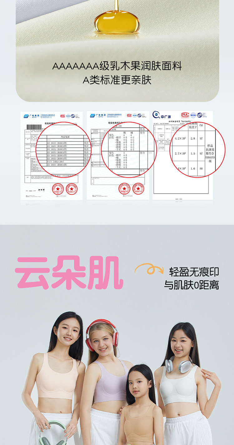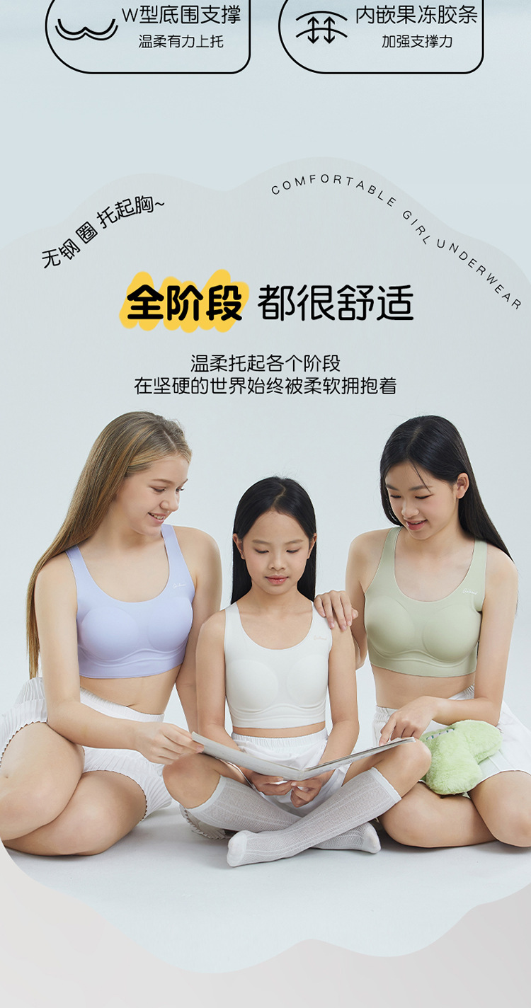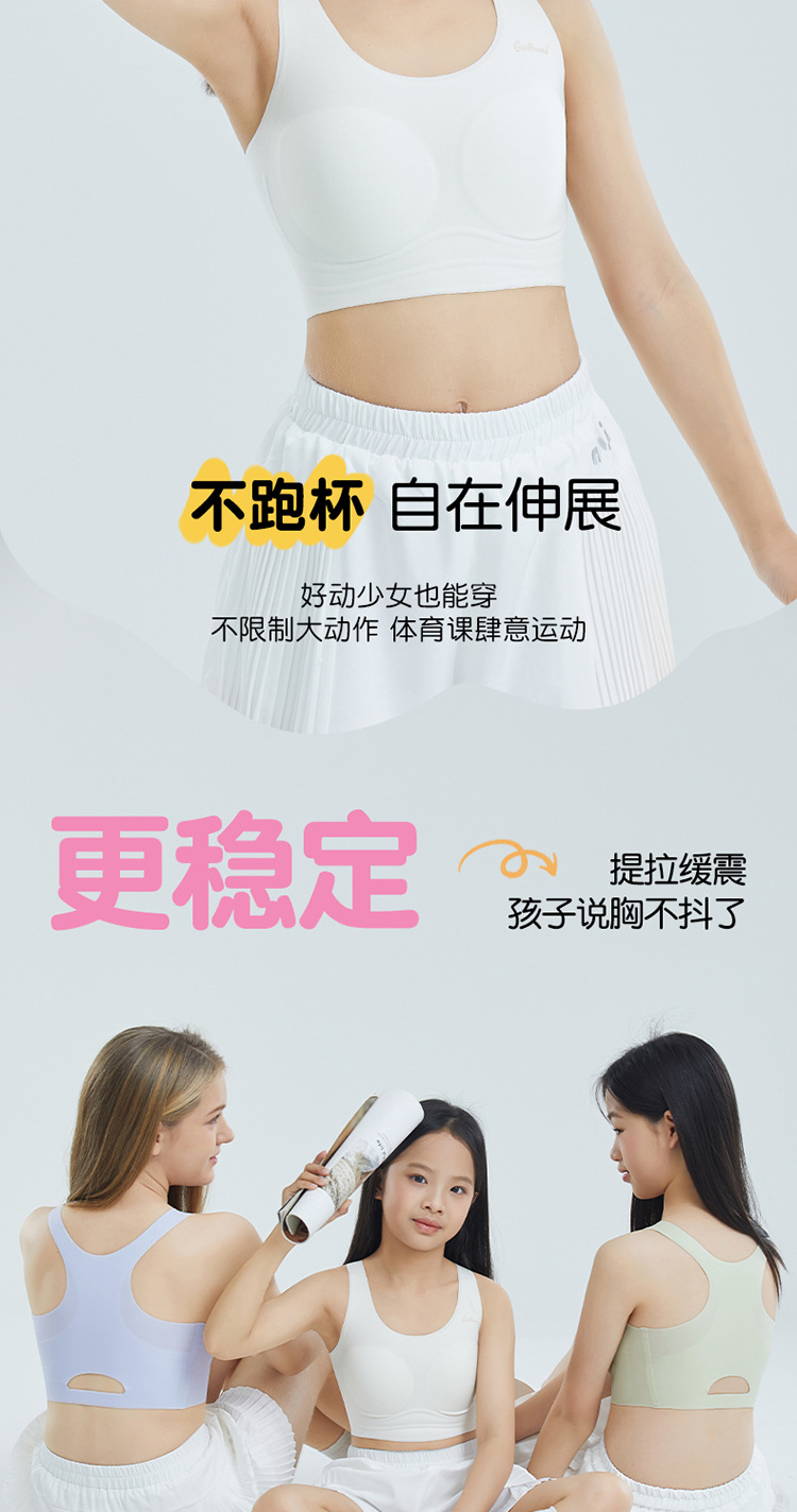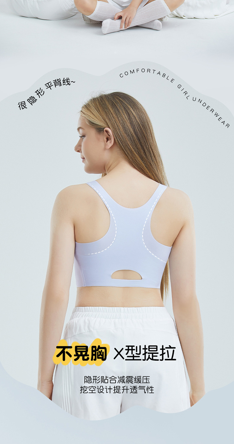 뽕나무 실크 소녀 속옷 스포츠 브래지어 충격 방지 달리기 개발 조기 고등학생 반 고정 컵 조끼스토어 가기