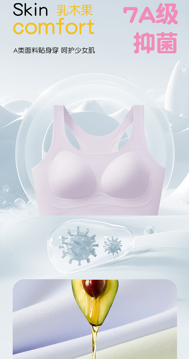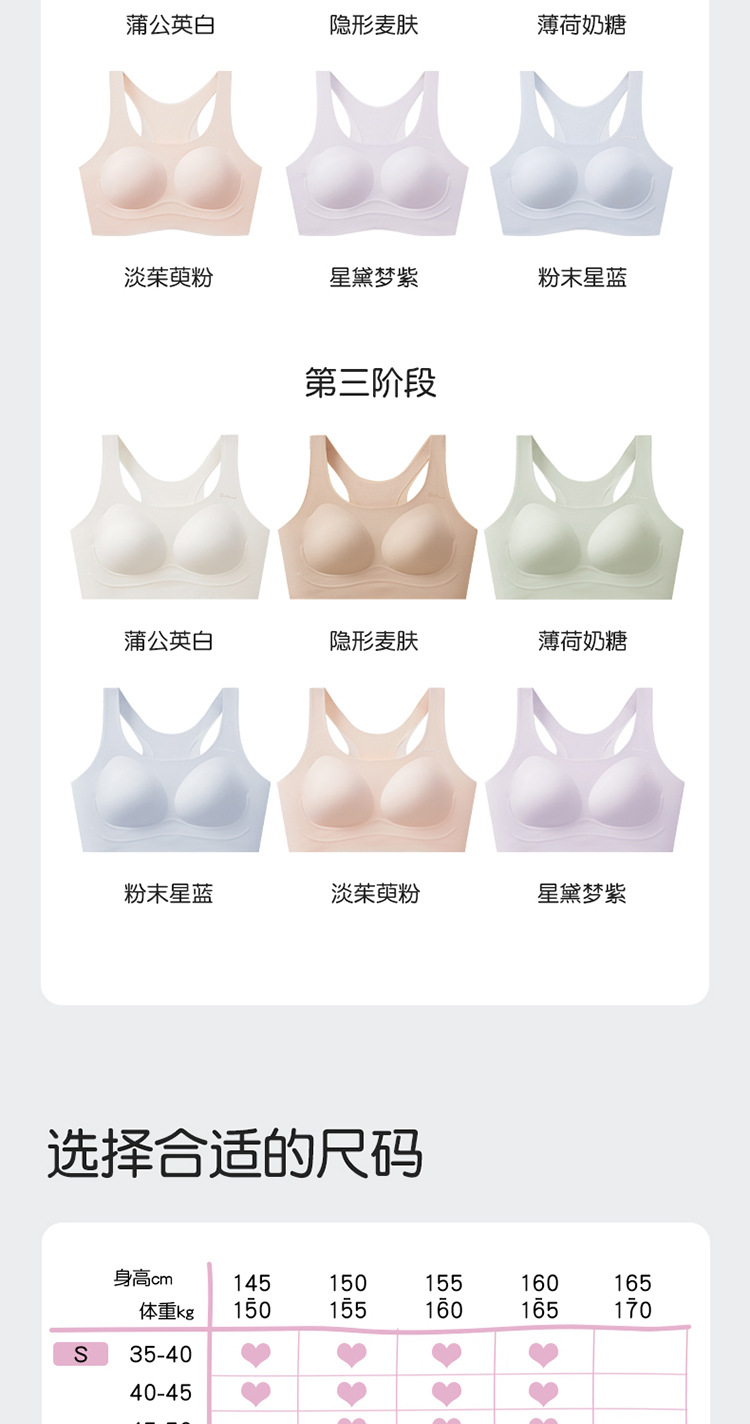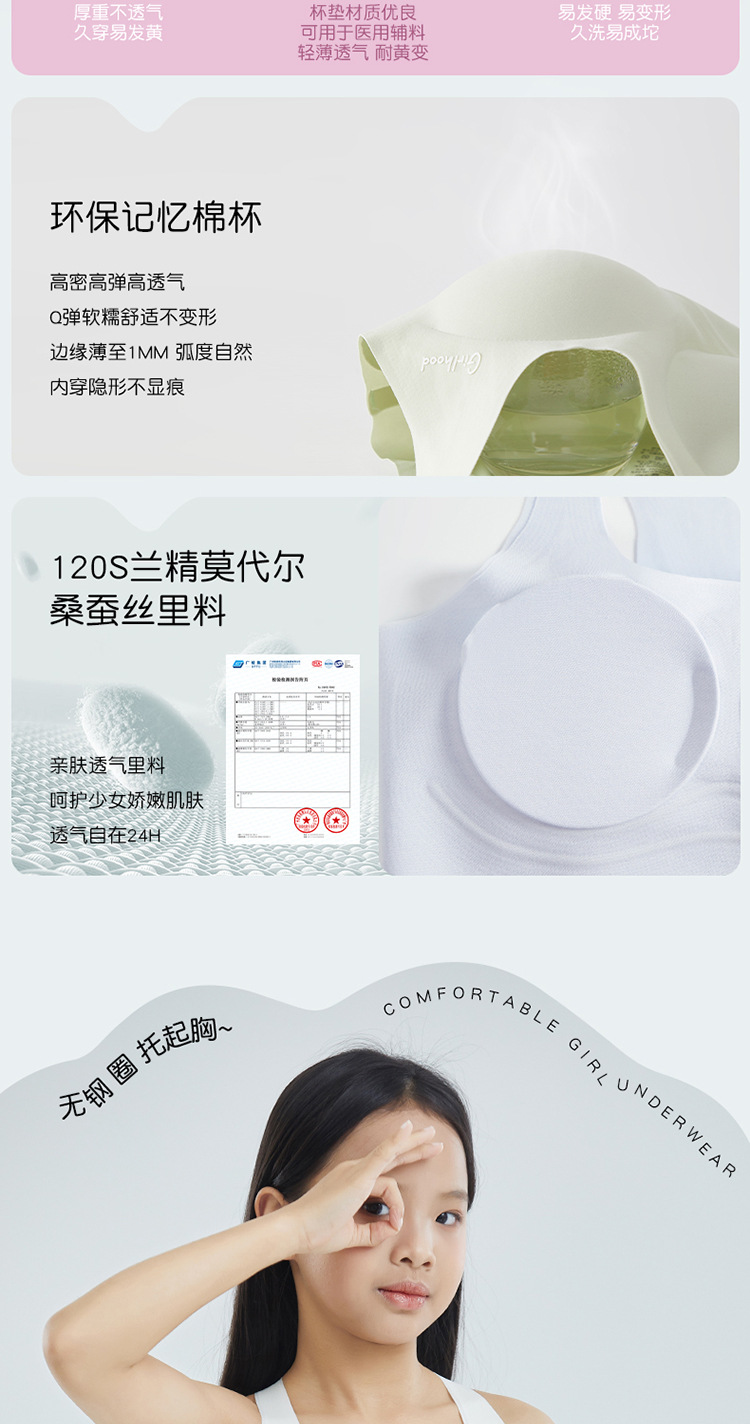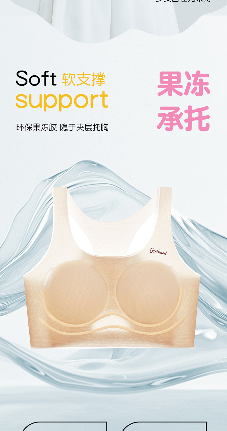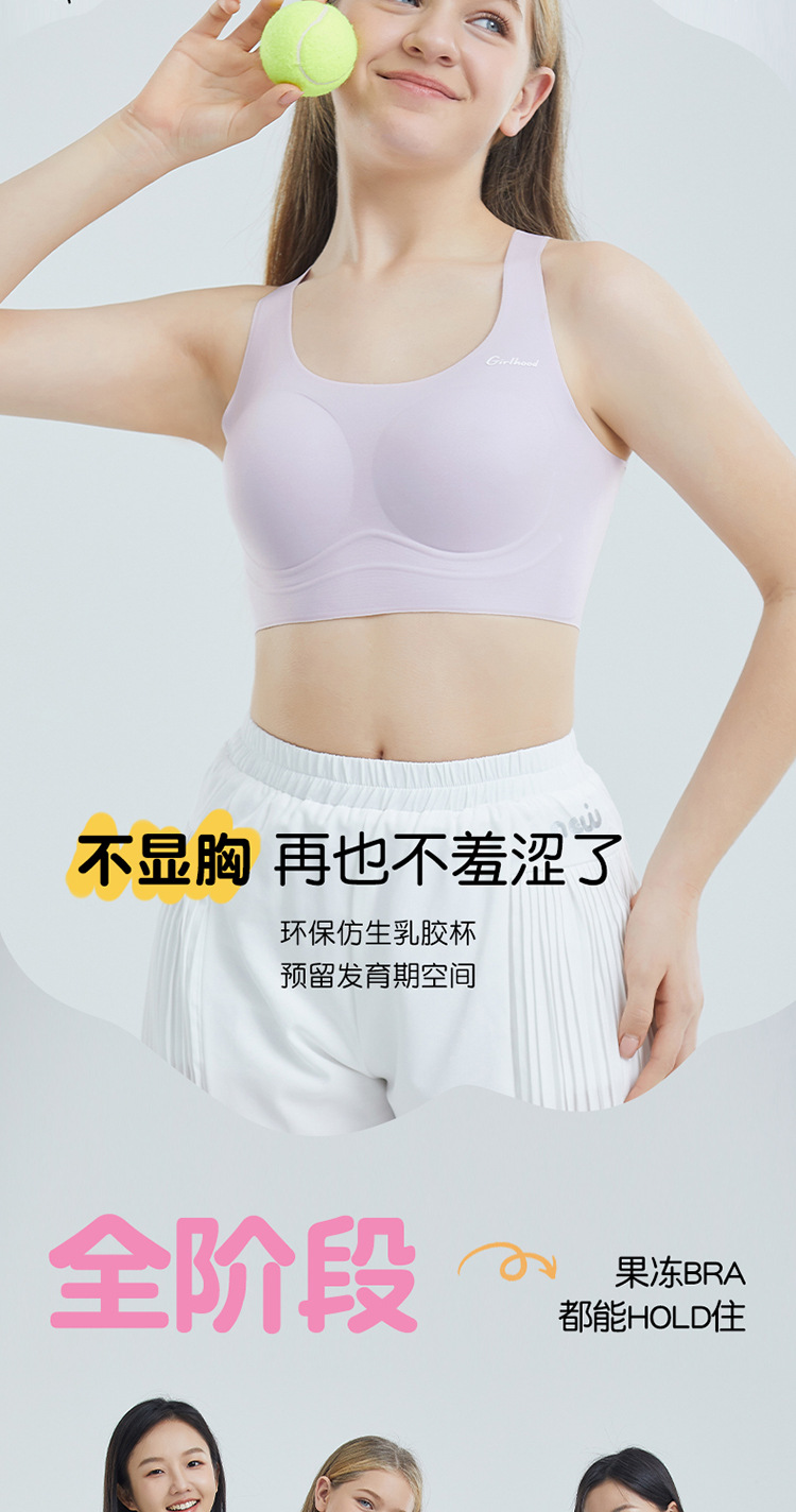 뽕나무 실크 소녀 속옷 스포츠 브래지어 충격 방지 달리기 개발 조기 고등학생 반 고정 컵 조끼