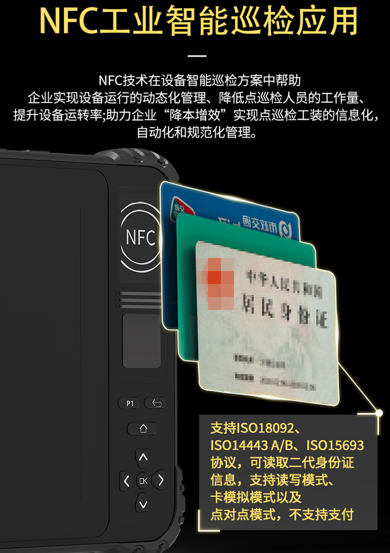 11.内置NFC: 13.56MHZ标准通讯协议,支持协议ISO1443A/B和15693;