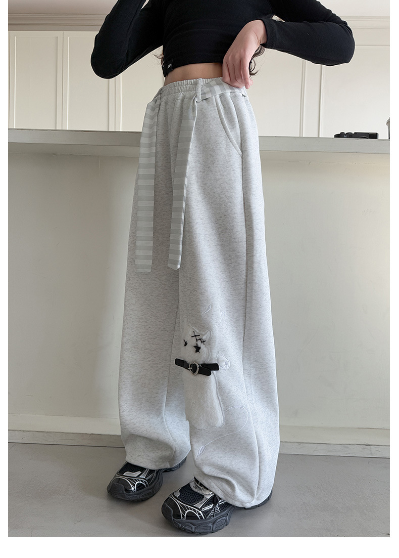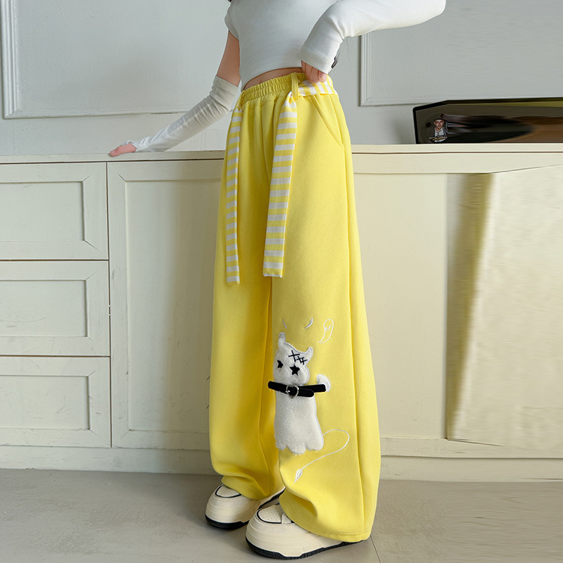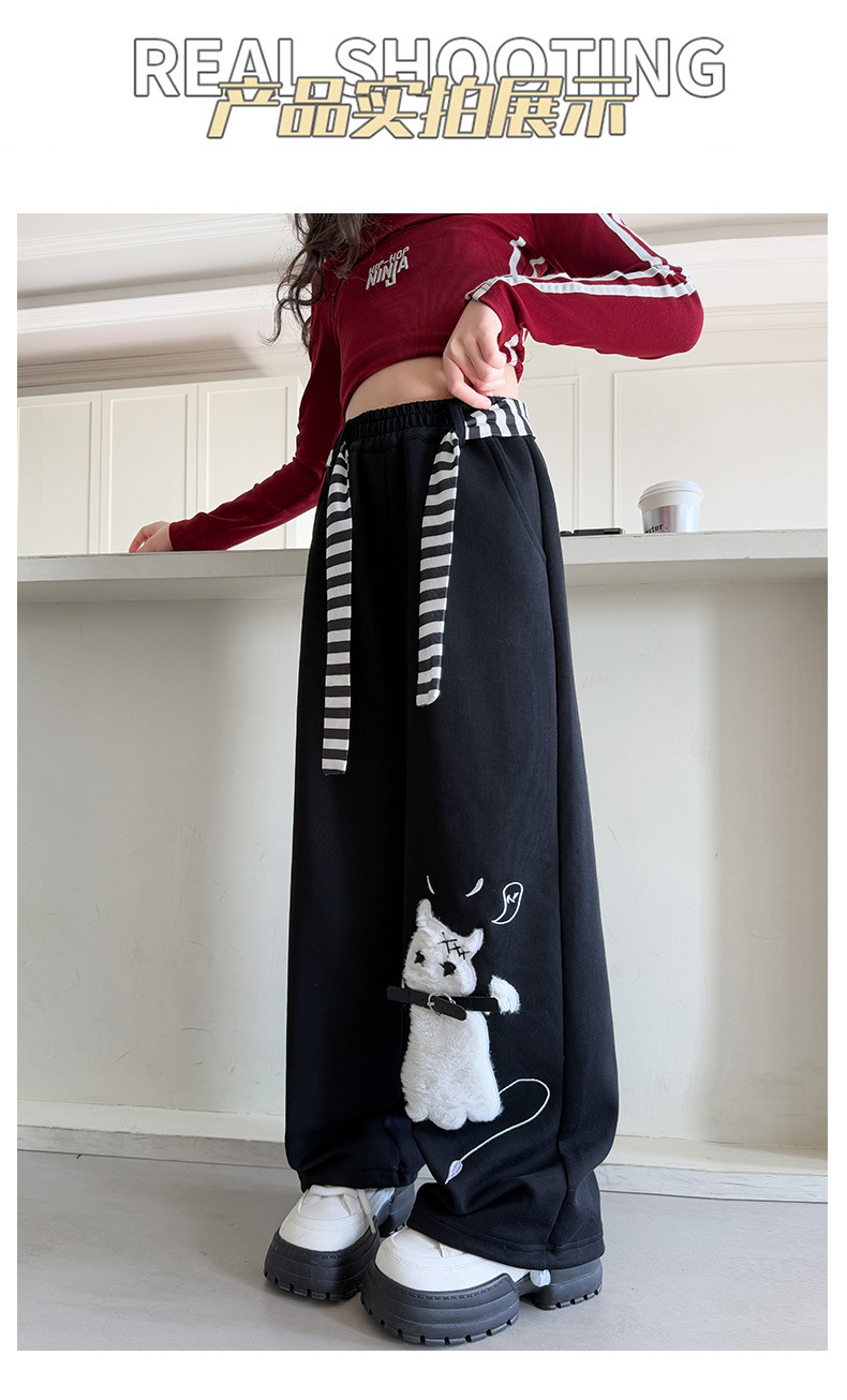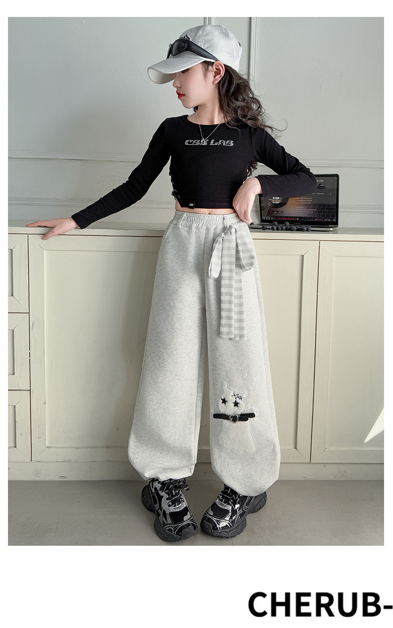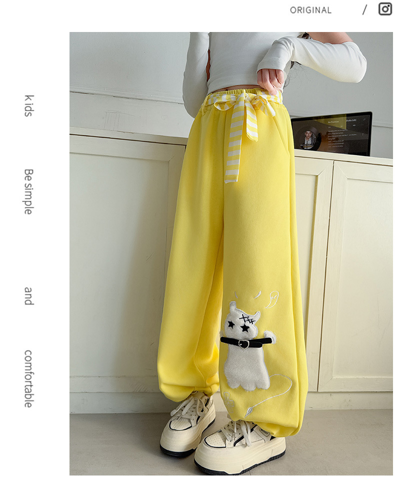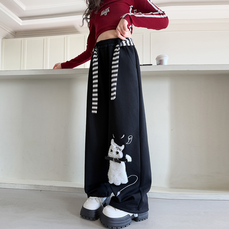 소녀 바지 2025 봄 새 고양이 운동복 대형 어린이 봄과 가을 양방향 넓은 다리 바지 소녀 캐주얼 바지 트렌디스토어 가기