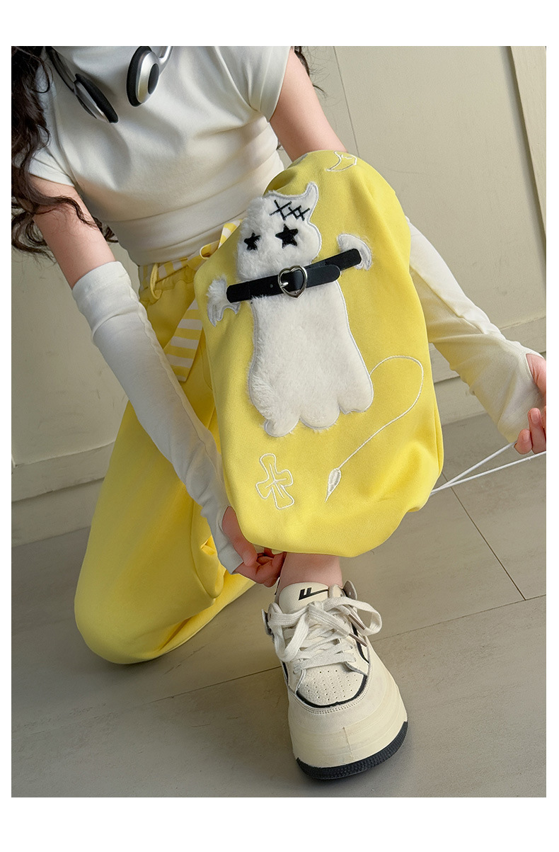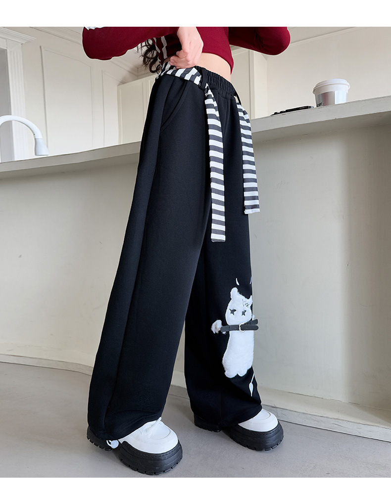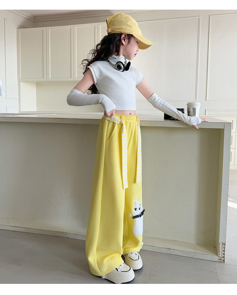 소녀 바지 2025 봄 새 고양이 운동복 대형 어린이 봄과 가을 양방향 넓은 다리 바지 소녀 캐주얼 바지 트렌디