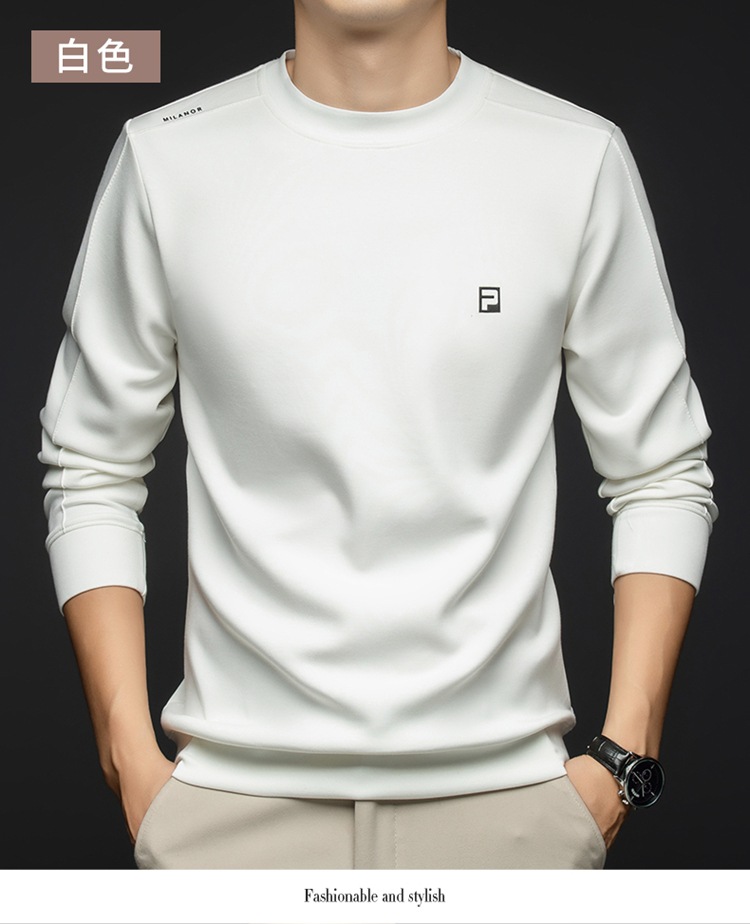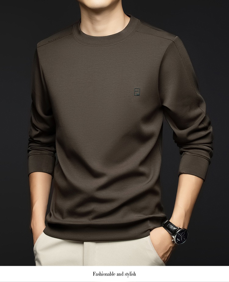 2025 새로운 가을 옷베이스 셔츠 T 긴팔 티셔츠 남성용 범프 자카드 크루 넥 스웨터 남성용 봄과 가을 옷