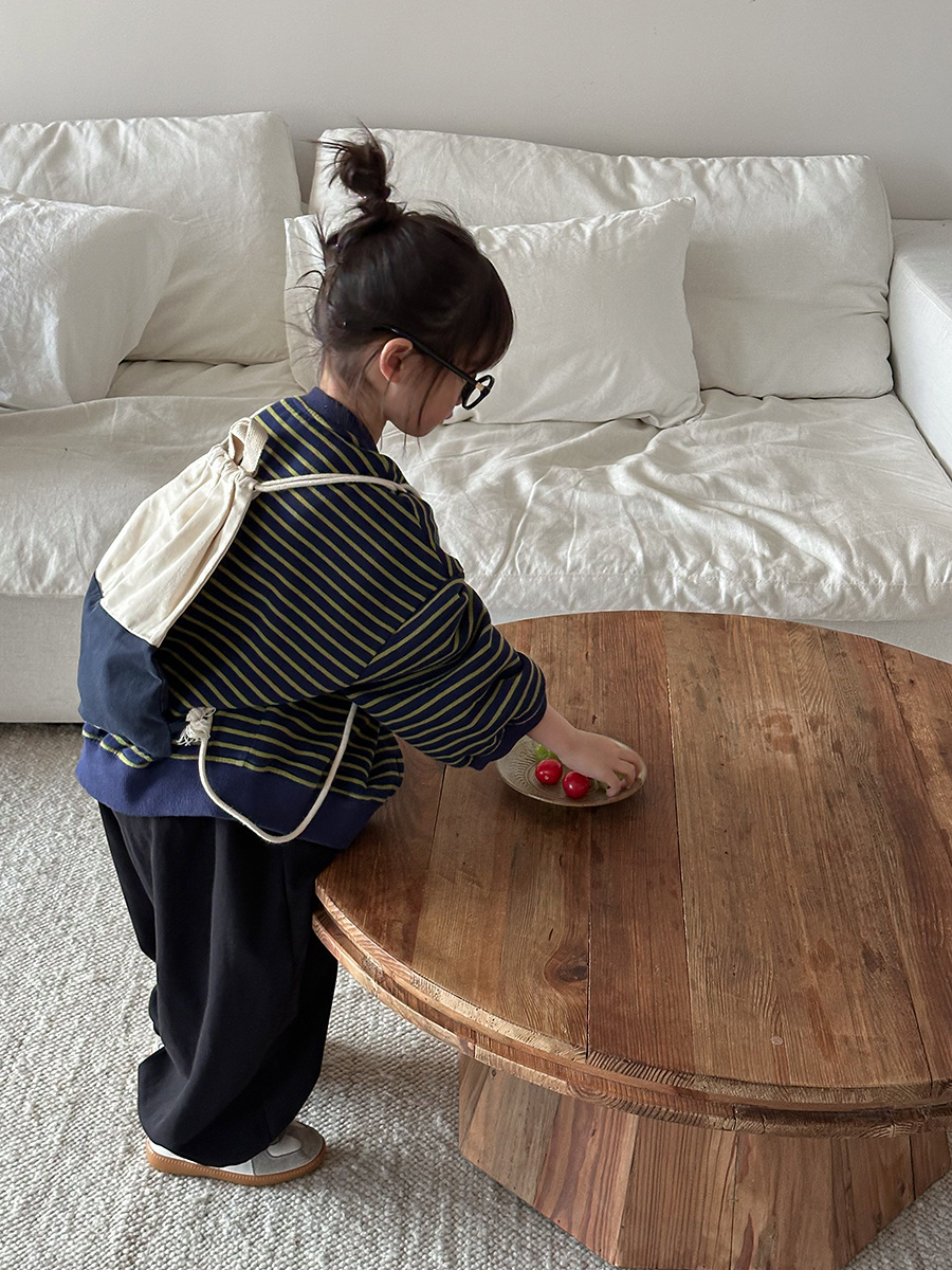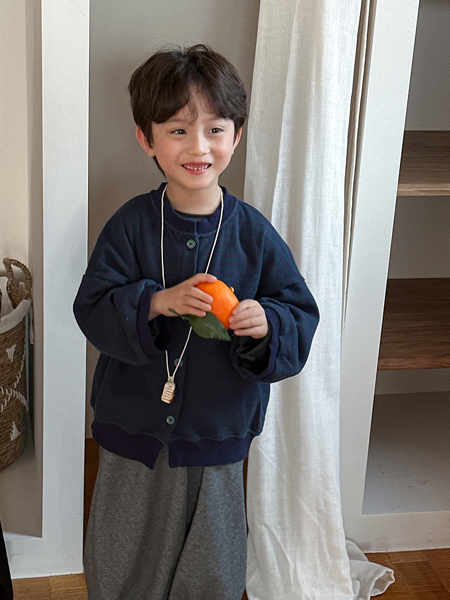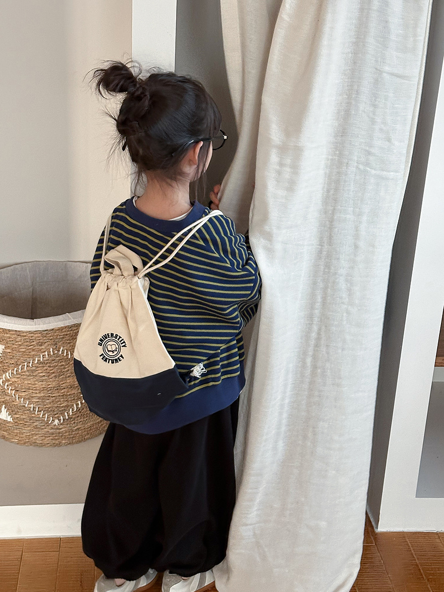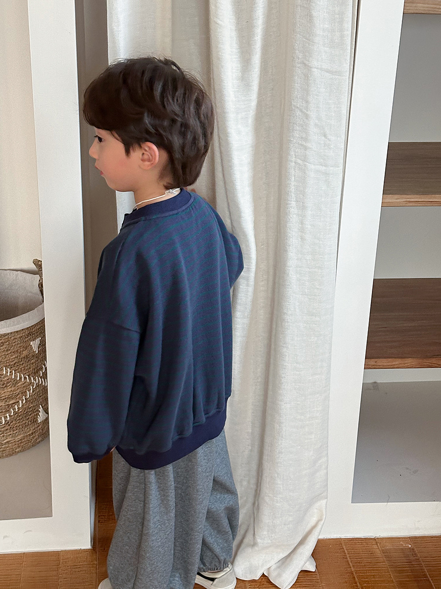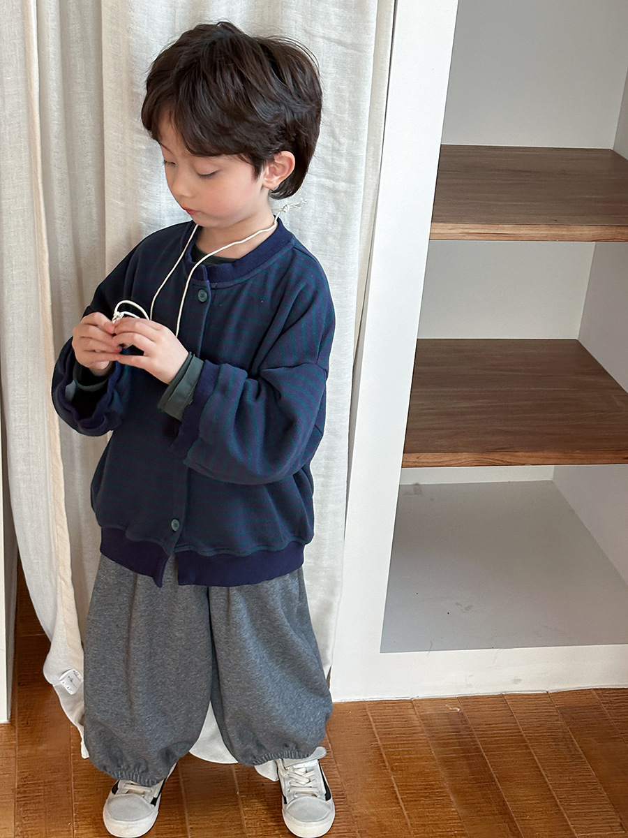 Jiaye 어린이 제품 2025 어린이 가을 새로운 줄무늬 니트 재킷 남성과 여성의 아기 유행 느슨한 재킷 카디건스토어 가기