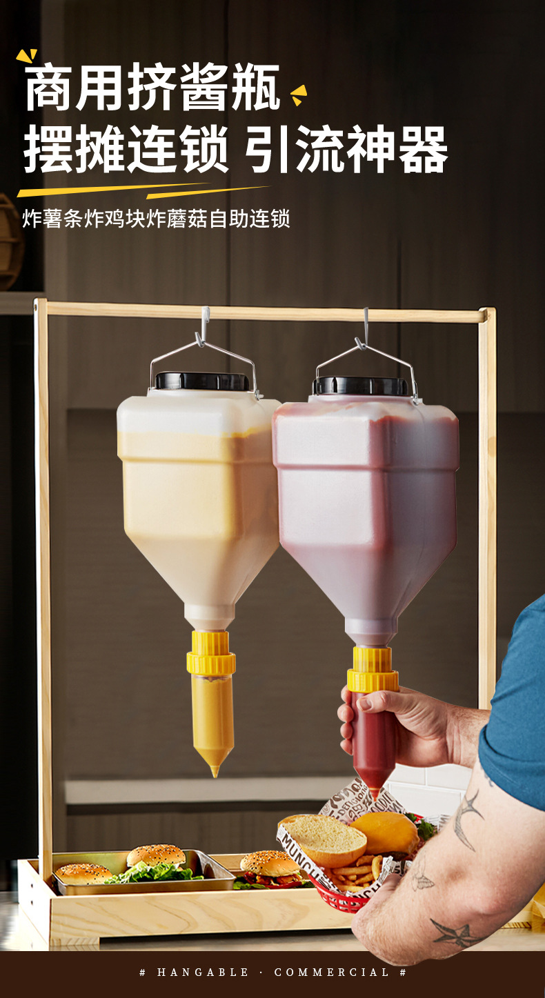 상업용 매달린 스퀴즈 소스 병 수직 소스 버킷 대용량 식품 등급 토마토 샐러드 소스 스퀴즈 병 소스 펌프스토어 가기
