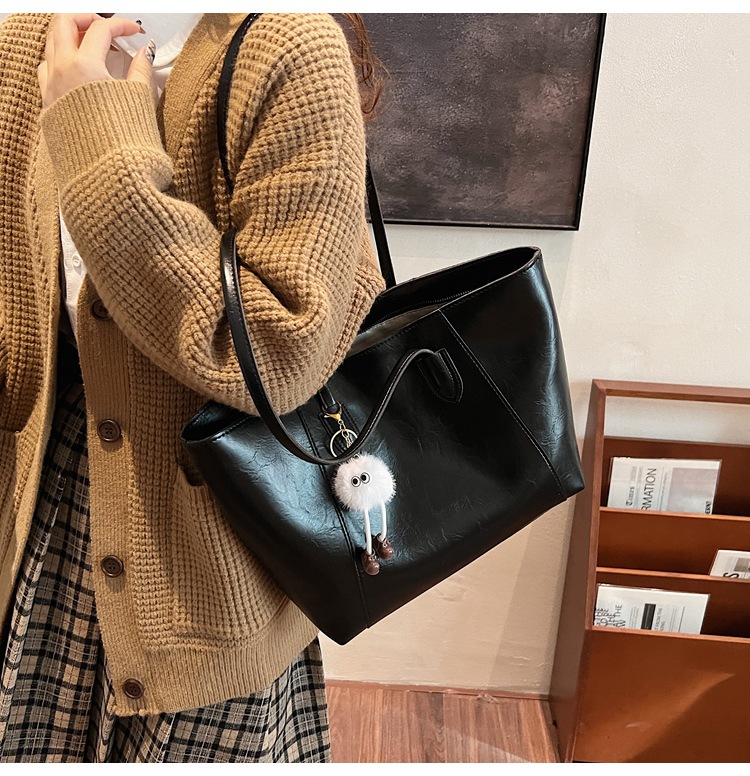 가방 여성의 대용량 2024 새로운 가을과 겨울 높은 감각 다크 브라운 대학생 클래스 어깨 가방 통근 토트 백