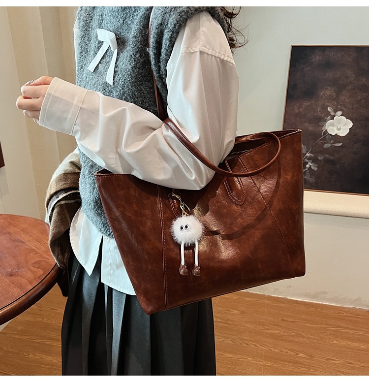 가방 여성의 대용량 2024 새로운 가을과 겨울 높은 감각 다크 브라운 대학생 클래스 어깨 가방 통근 토트 백스토어 가기