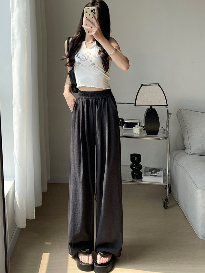 아세테이트 밀크 바지 여성 봄 여름 2025 새로운 스타일 게으른 스타일 아이스 실크 캐주얼 바지 하이 웨이스트 질감 야마모토 와이드 레그 팬츠