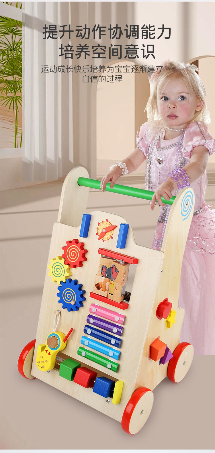 어린이 나무 조기 교육 다기능 노킹 기어 워커 아기 학습 다기능 카트 나무 장난감스토어 가기
