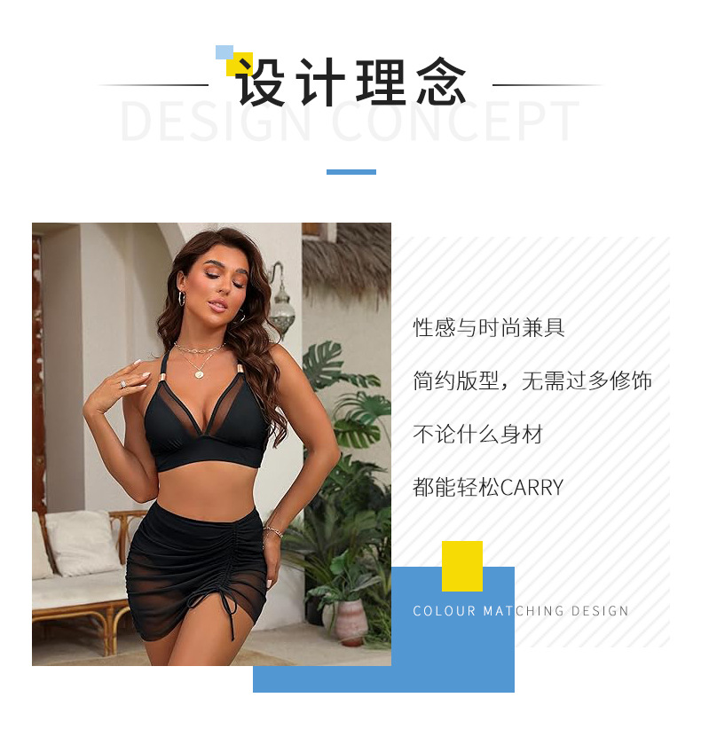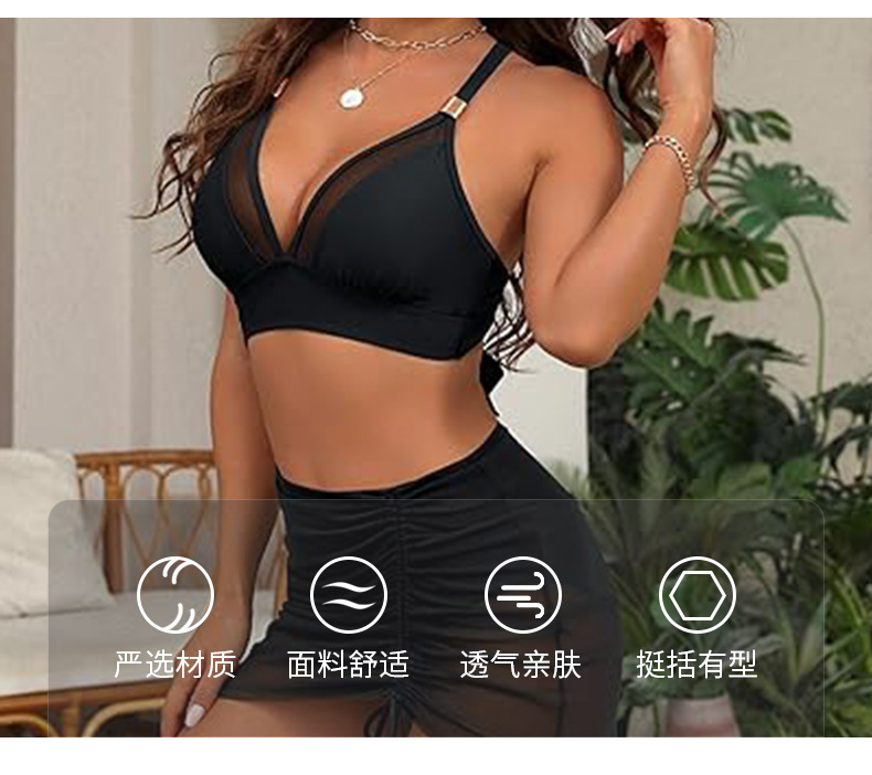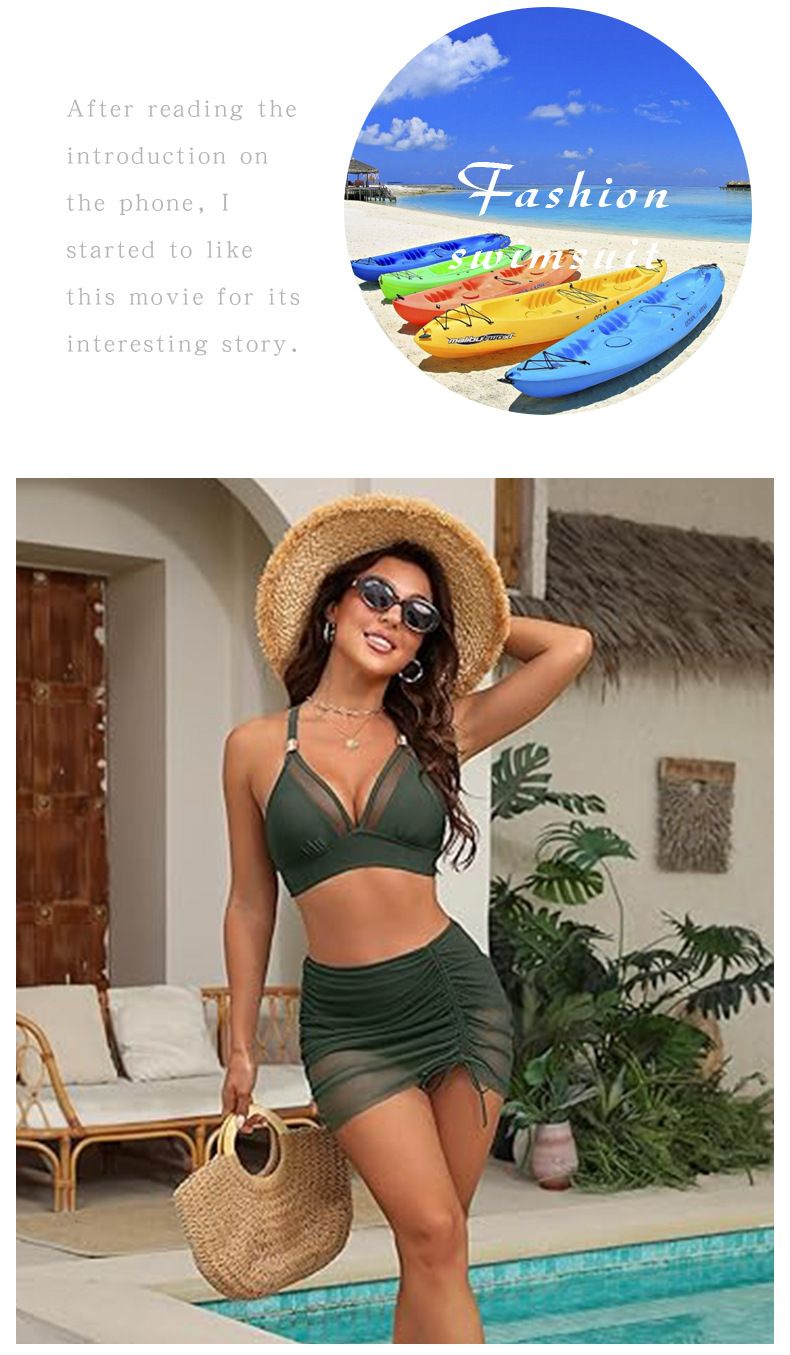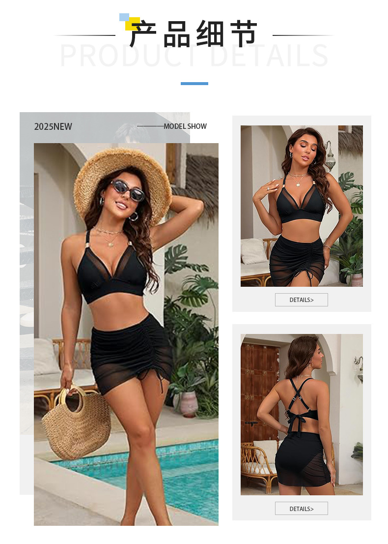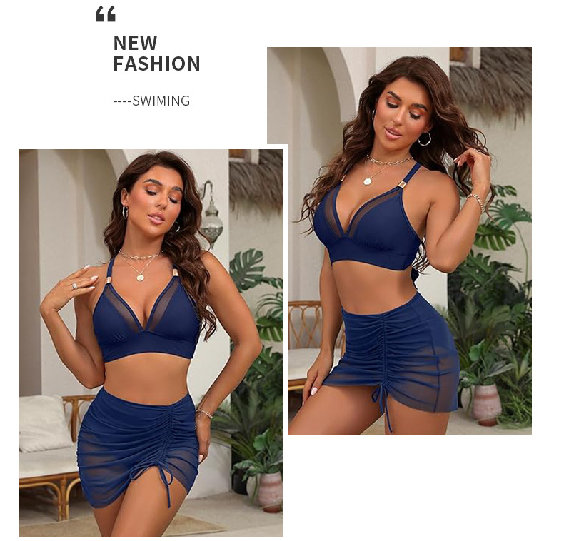 2025 새로운 유럽과 미국의 비키니 수영복 국경 아마존 섹시 메쉬 드로우 스트링 랩 스커트 비키니 3 피스 세트