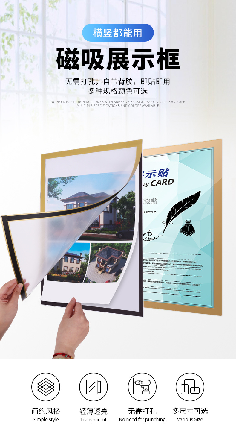 마그네틱 디스플레이 페이스트 멀티 사양 포토 프레임 보호 커버 네일 프리 소프트 컬러 비즈니스 라이센스 프레임 어워드 프레임 지원 사용자 정의스토어 가기