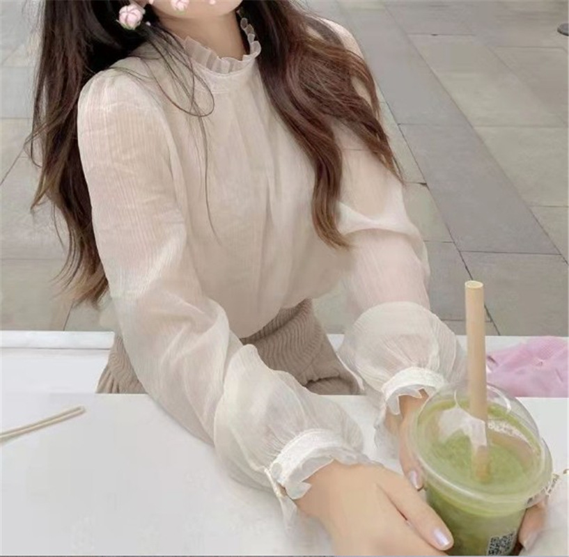 레이스 칼라 레이스베이스 셔츠 여성의 2025 봄 가을 디자인 센스 니쉬 쉬폰 셔츠 탑 긴 소매 내부 셔츠스토어 가기