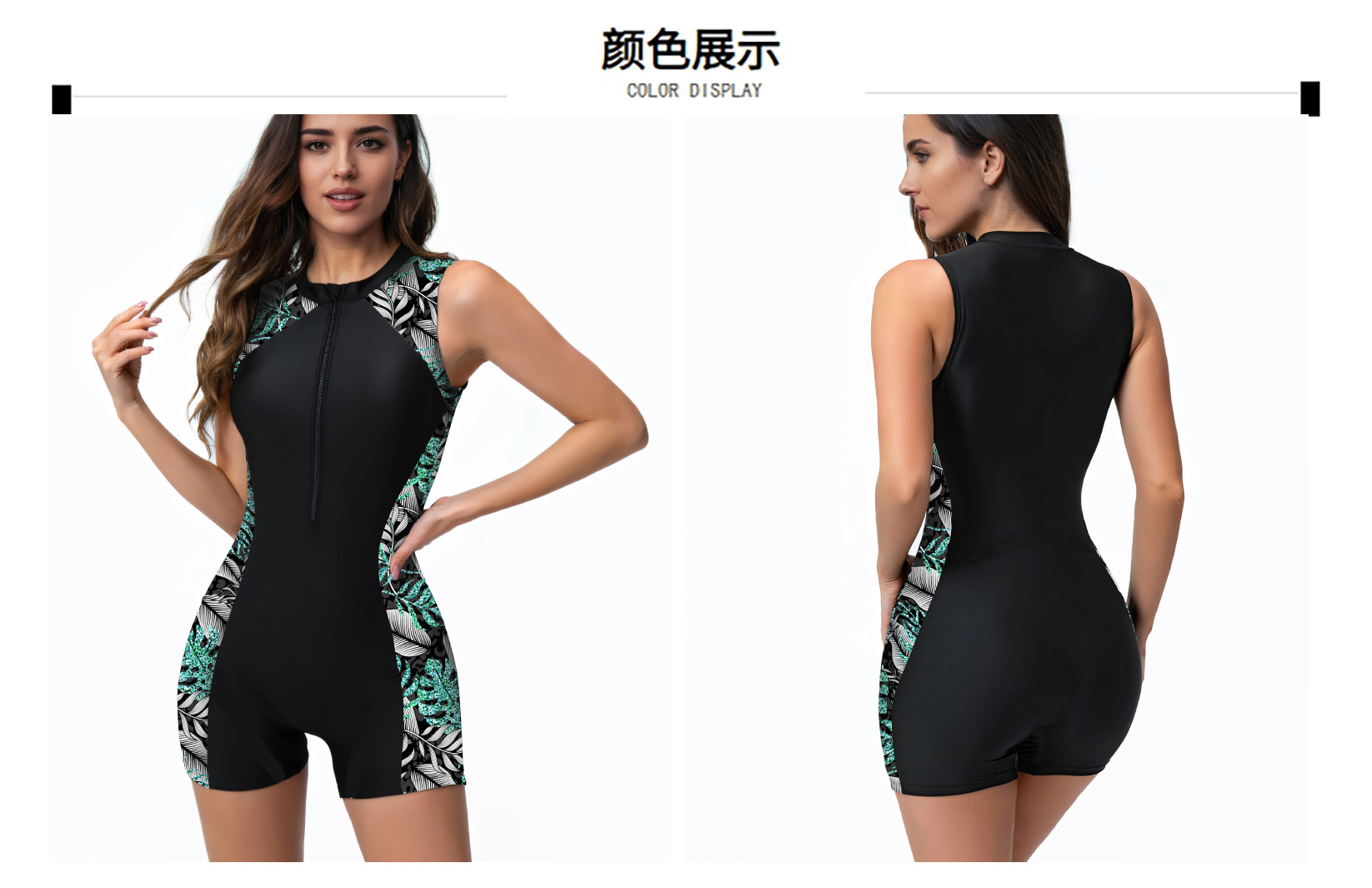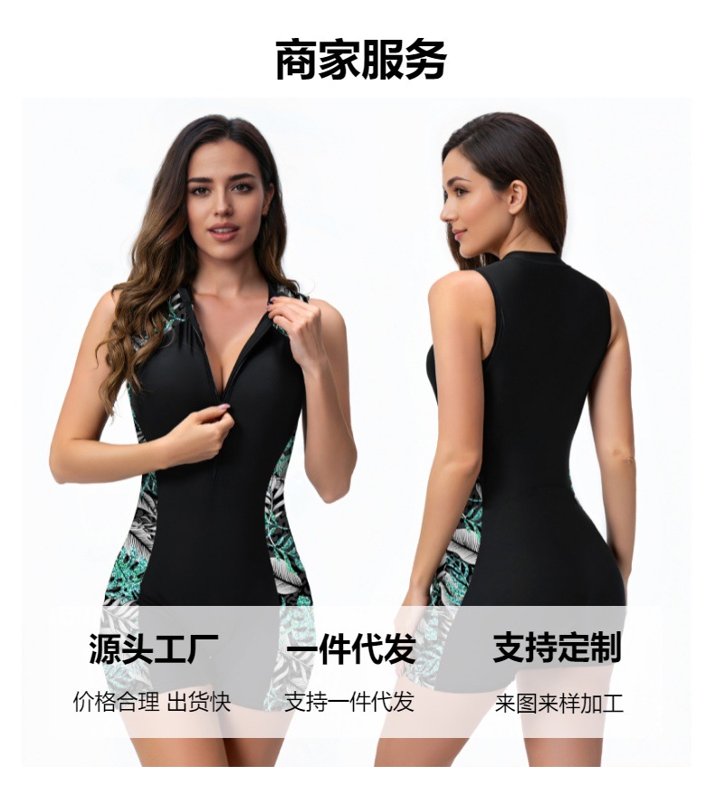 국경 간 유럽과 미국의 대외 무역 새로운 디지털 인쇄 아마존 비키니 컷 슬리브 지퍼 서핑 의류 원피스 수영복 여성