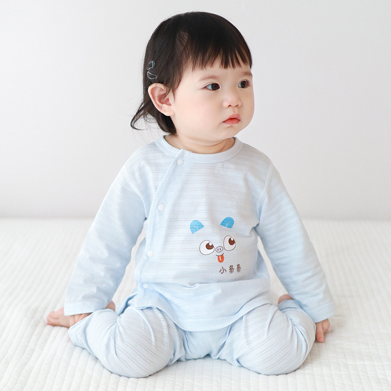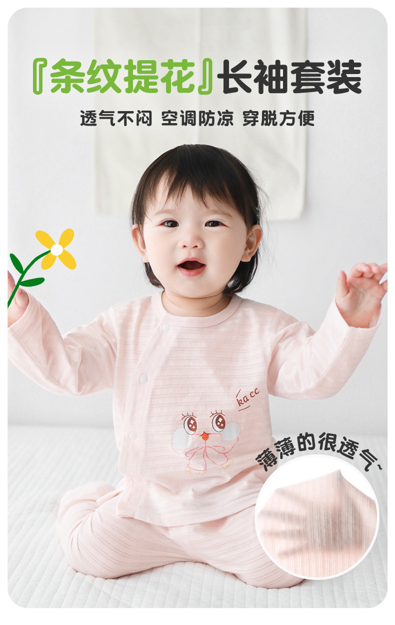 아기의 긴 소매 세트 여름 소년과 소녀 순수한면 얇은 분할 어린이 에어컨 여름 잠옷 아기 옷스토어 가기
